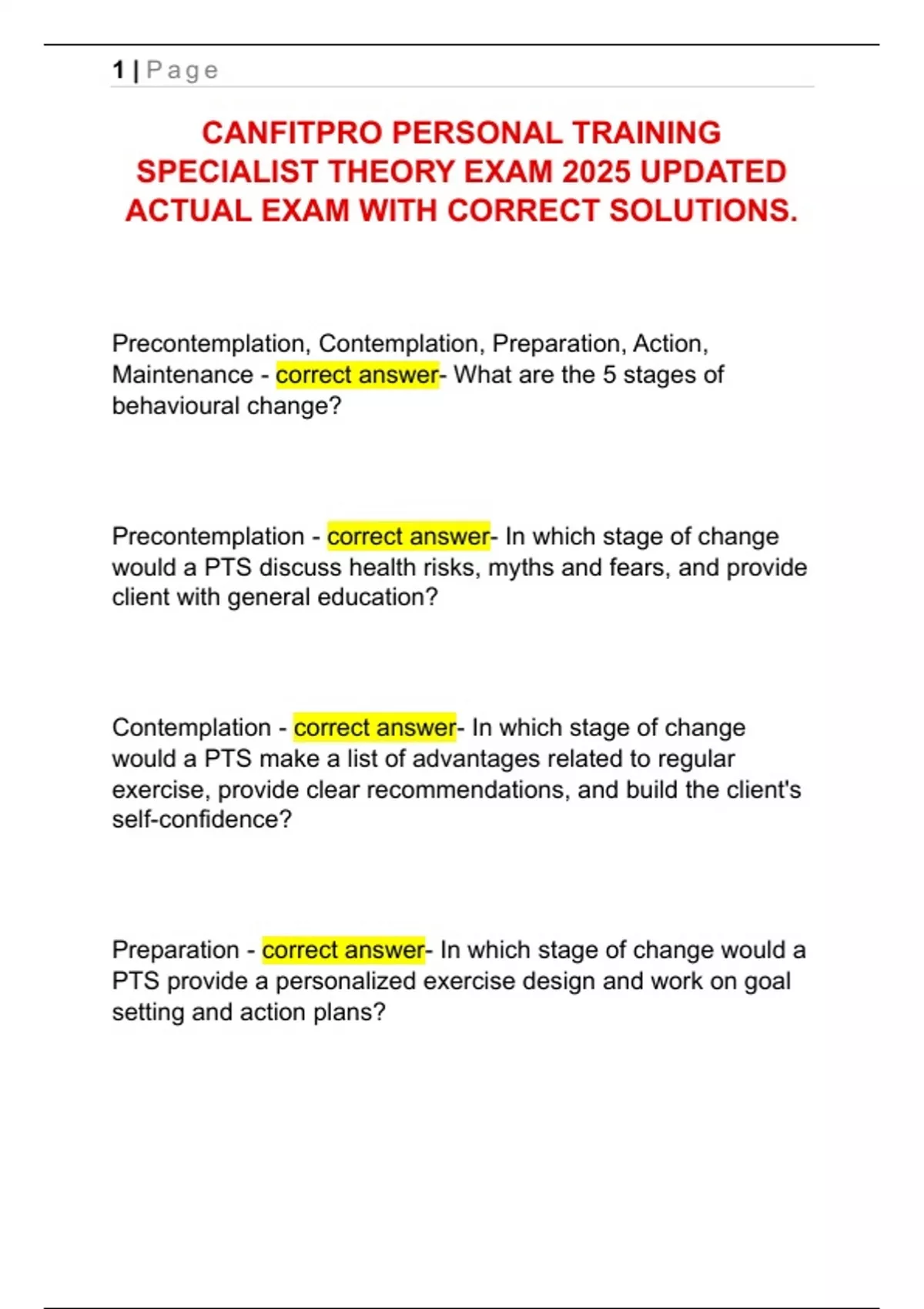 CANFITPRO PERSONAL TRAINING SPECIALIST THEORY EXAM 2025 UPDATED ACTUAL EXAM WITH CORRECT SOLUTIONS.