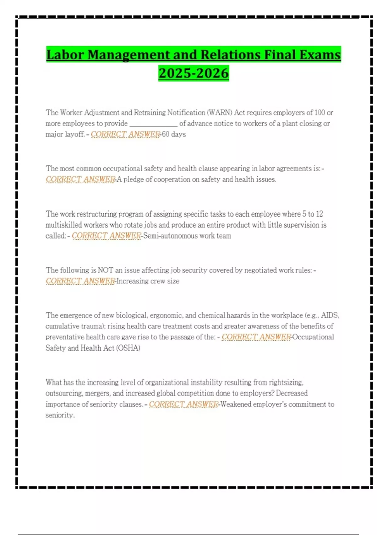 Labor Management and Relations Final Exams