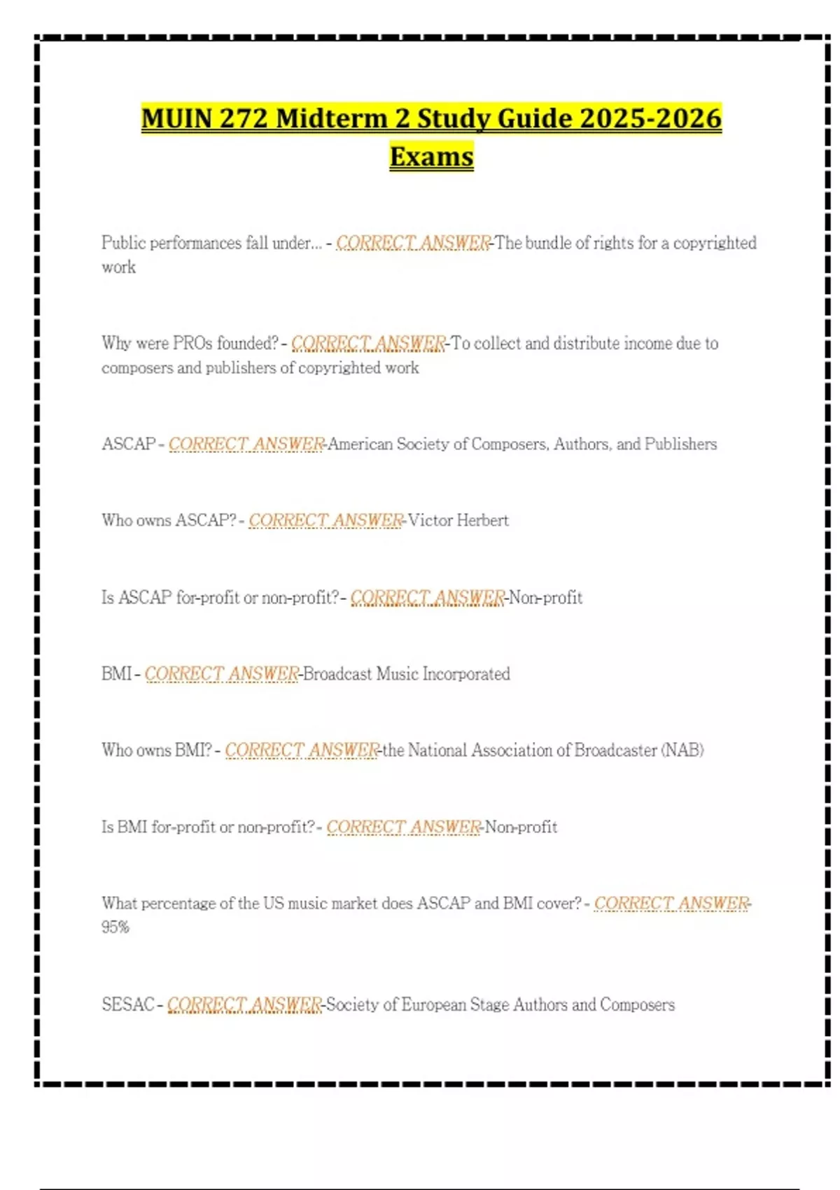 MUIN 272 Basics of the Music Industry Copyright Laws Bundle Exams