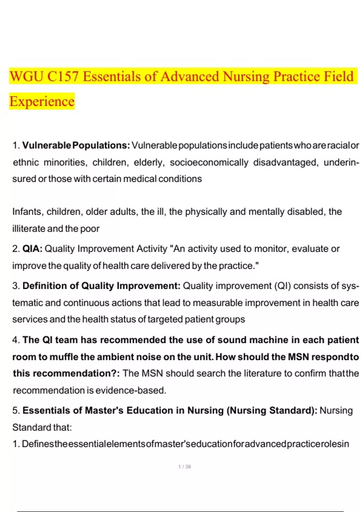 WGU C157 Essentials of Advanced Nursing Practice Field