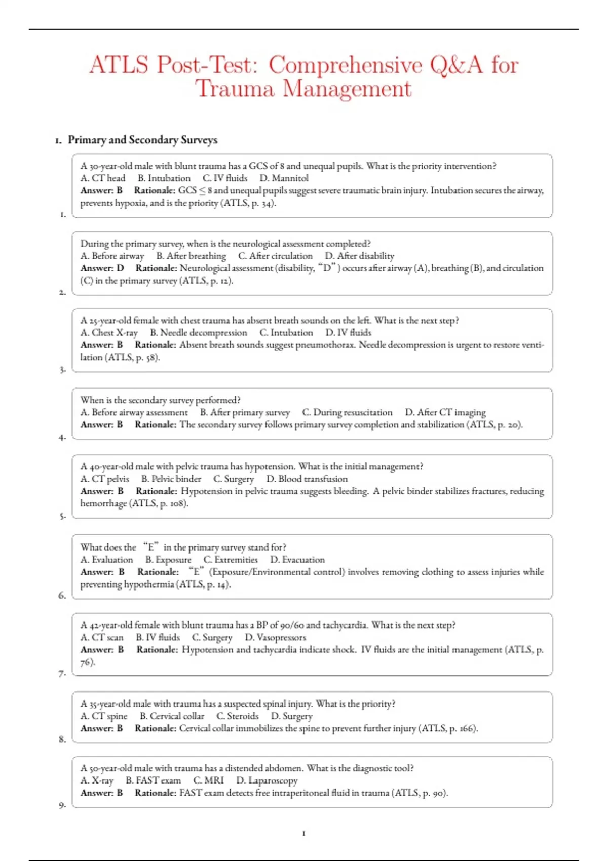 ATLS Post-Test: Comprehensive Q&A for Trauma Management