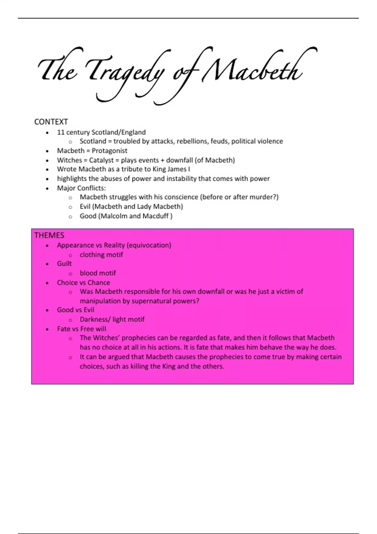 o The Witches’ prophecies can be regarded as fate, and then it follows that Macbeth