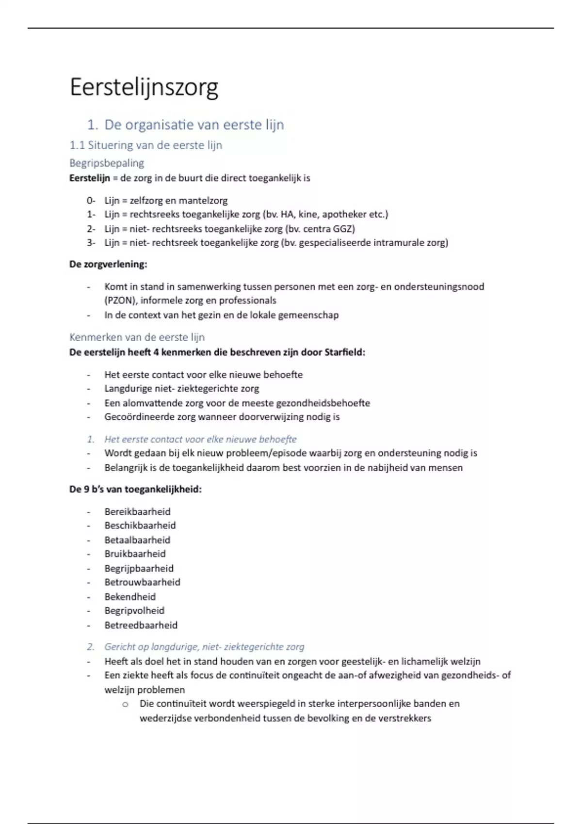 De eerstelijn heeft 4 kenmerken die beschreven zijn door Starfield: