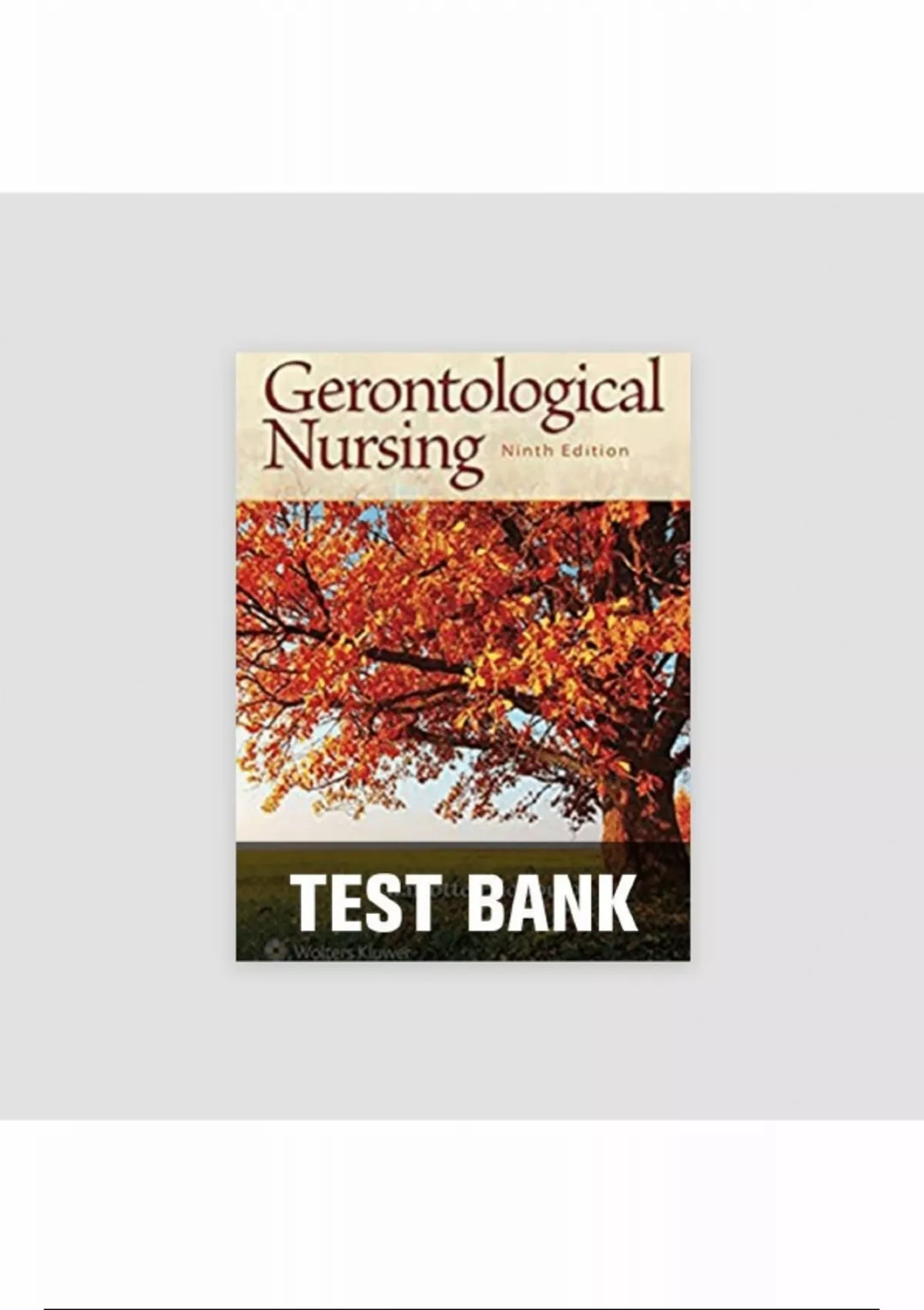 Test Bank for Gerontological Nursing 9th Edition by Charlotte Eliopoulos 9780060000387 | Complete Guide A+. Chapter 1 The Aging Population 1. The nurse explains that in the late 1960s, health care focus was aimed at the older adult because: a. disability was viewed as unavoidable. b. complications from disease increased mortality. c. older adults needs are similar to those of all adults. d. preventive health care practices increased longevity. ANS: D Increased preventive health care practices, disease control, and focus on wellness helped people live longer. DIF: Cognitive Level: Comprehension REF: 2 OBJ: 2 TOP: Aging Trends KEY: Nursing Process Step: Implementation MSC: NCLEX: Health Promotion and Maintenance: Growth and Development 2. The nurse clarifies that in the terminology defining specific age groups, the term aged refers to persons who are: a. 55 to 64 years of age. b. 65 to 74 years of age. c. 75 to 84 years of age. d. 85 and older. ANS: C The term aged refers to persons who are 75 to 84 years of age. DIF: Cognitive Level: Comprehension REF: 2, Table 1-1 OBJ: 1 TOP: Age Categories KEY: Nursing Process Step: Implementation MSC: NCLEX: Health Promotion and Maintenance: Growth and Development 3. The nurse cautions that ageism is a mindset that influences persons to: a. discriminate against persons solely on the basis of age. b. fear aging. c. be culturally sensitive to concerns of aging. d. focus on resources for the older adult. ANS: A Ageism is a negative belief pattern that influences persons to discriminate against persons solely on the basis of age and can lead to destructive behaviors toward the older adult. DIF: Cognitive Level: Comprehension REF: 5 OBJ: 3 TOP: Ageism KEY: Nursing Process Step: Implementation MSC: NCLEX: Psychosocial Integrity: Psychosocial Adaptation 4. The nurse points out that the most beneficial legislation that has influenced health care for the older adult is: a. Medicare and Medicaid. b. elimination of the mandatory retirement age. c. the Americans with Disabilities Act. d. the Drug Benefit Program. ANS: A The broadest sweeping legislation beneficial to the older adult is Medicare and Medicaid. DIF: Cognitive Level: Application REF: 16 OBJ: 6 TOP: Legislation KEY: Nursing Process Step: Implementation MSC: NCLEX: N/A 5. The nurse clarifies that a housing option for the older adult that offers the privacy of an apartment with restaurant-style meals and some medical and personal care services is the: a. government-subsidized housing. b. long-term care facility. c. assisted-living center. d. group housing plan. ANS: C Assisted-living arrangements offer the privacy of an apartment or condominium with meals prepared and served, limited medical care, and a variety of personal services. DIF: Cognitive Level: Application REF: 14 OBJ: 9 TOP: Housing Options KEY: Nursing Process Step: Implementation MSC: NCLEX: Physiological Integrity: Physiological Adaptation 6. The 75-year-old man who has been hospitalized following a severe case of pneumonia is concerned about his mounting hospital bill and asks if his Medicare coverage will pay for his care. The nurses most helpful response is Yes. Medicare: a. pays 100% of all medical costs for persons older than 65. b. Part B pays hospital costs and physician fees. c. Part A pays for inpatient hospital costs. d. Part D pays 80% of the charges made by physicians. ANS: C Medicare Part A pays inpatient hospital costs, Part B pays 80% of physicians charges, and Part D helps defray prescription drug costs. DIF: Cognitive Level: Application REF: 16 OBJ: 6