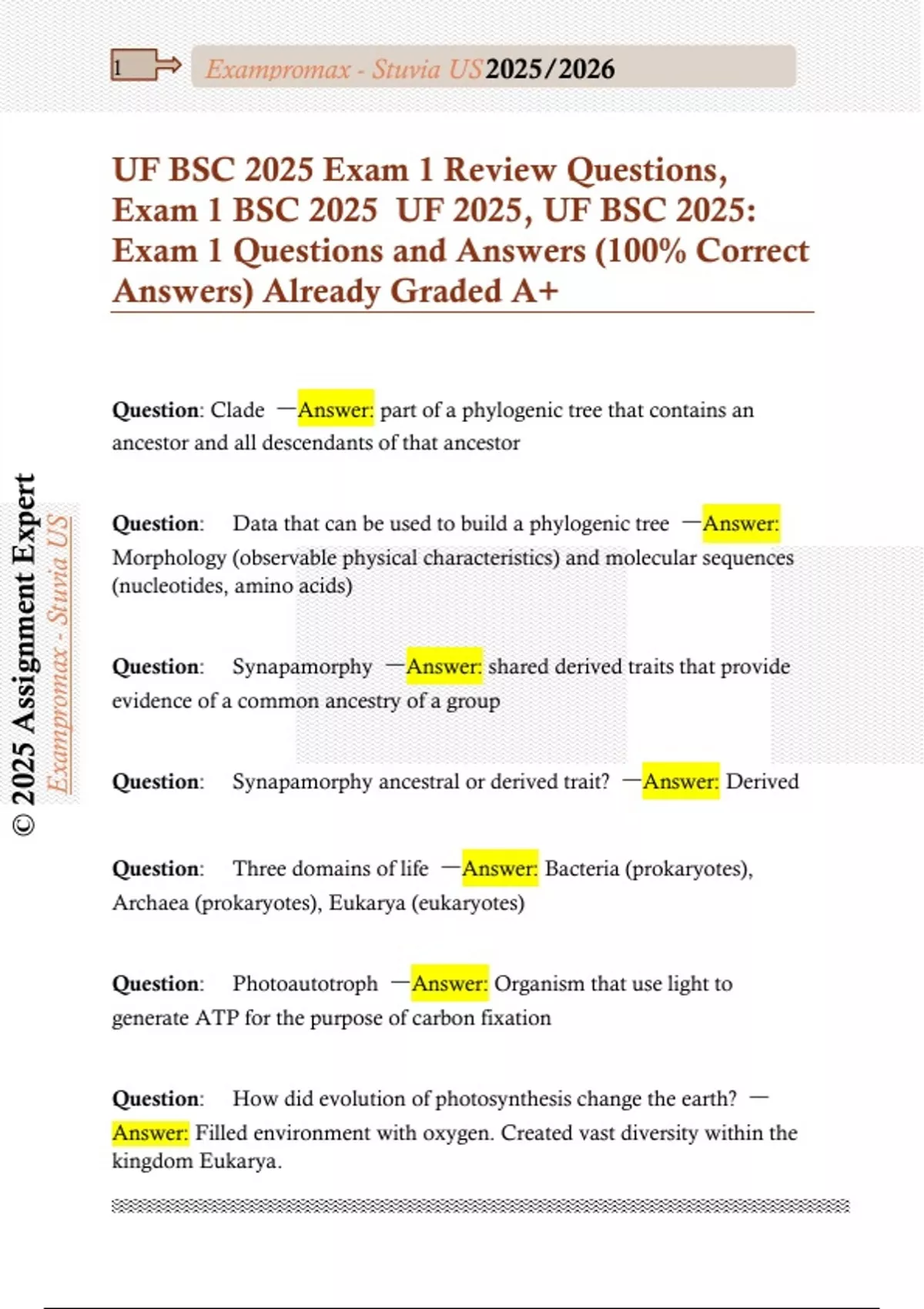 UF BSC 2025 Exam 1 Review Questions, Exam 1 BSC 2025 UF 2025, UF BSC 2025: Exam 1 Questions and Answers (100% Correct Answers) Already Graded A+