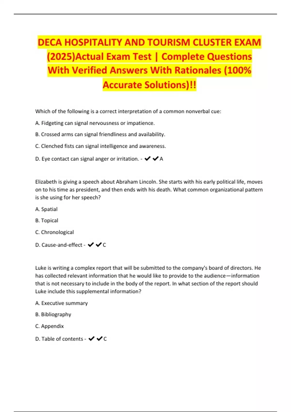 DECA HOSPITALITY AND TOURISM CLUSTER EXAM