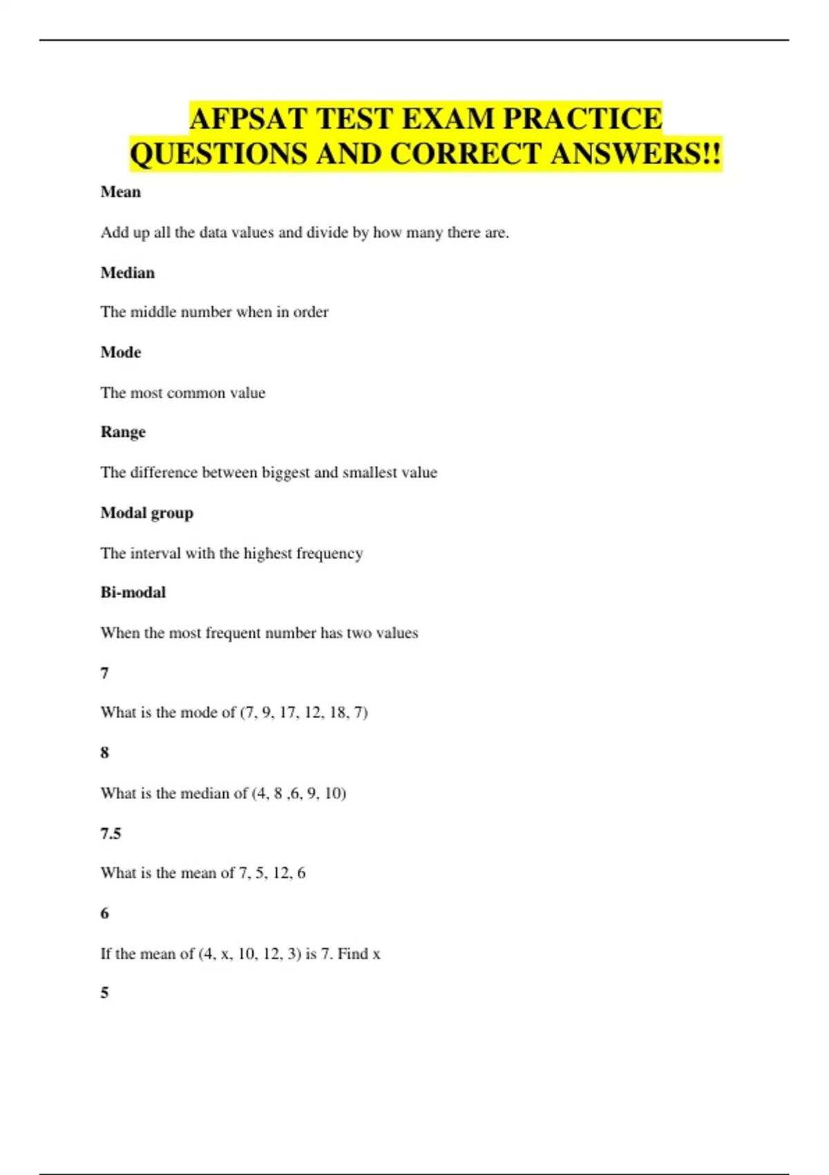 AFPSAT TEST EXAM PRACTICE QUESTIONS AND CORRECT ANSWERS!