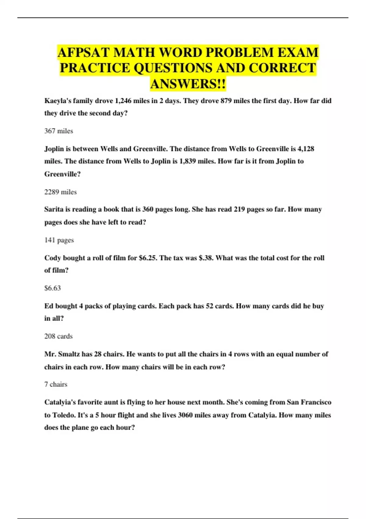 AFPSAT MATH WORD PROBLEM EXAM