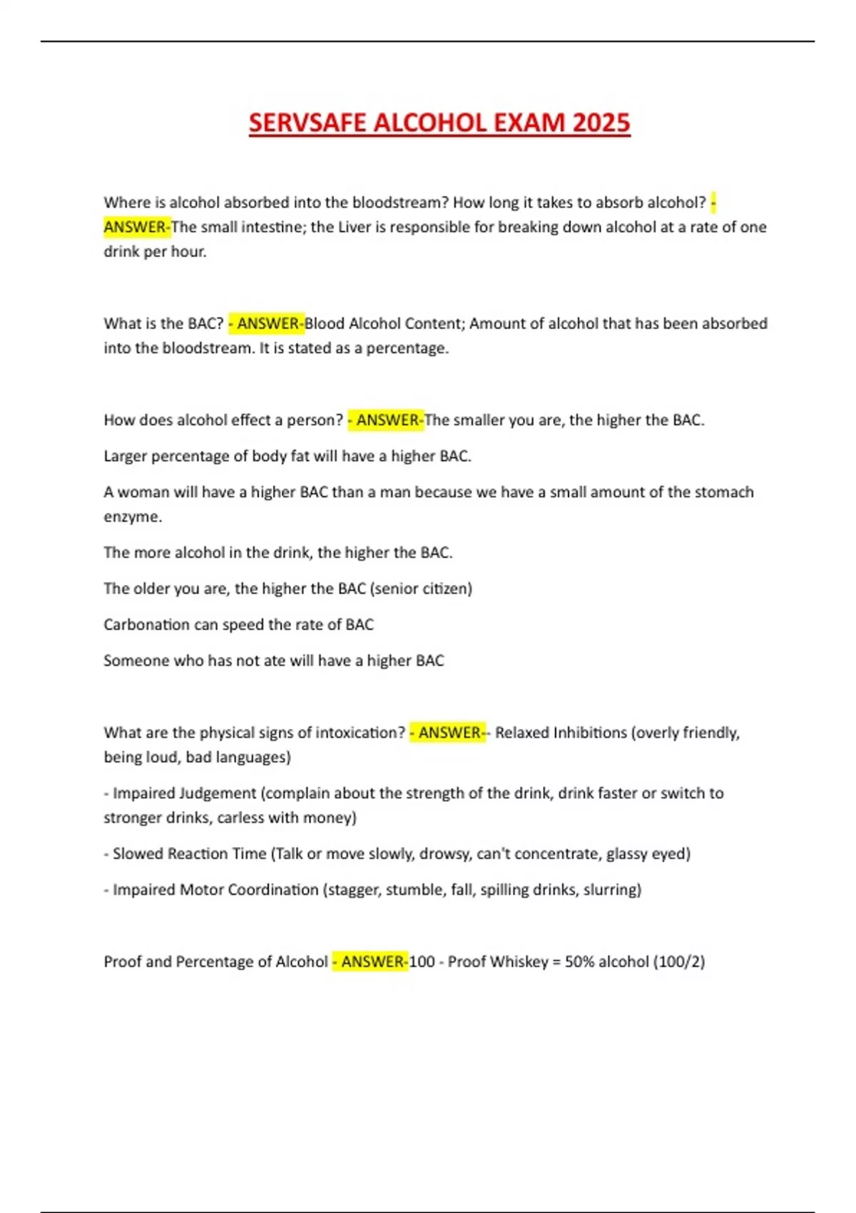 SERVSAFE ALCOHOL EXAM 2025 LATEST UPDATE QUESTIONS WITH VERIFIED ANSWERS// GUARANTEED PASS