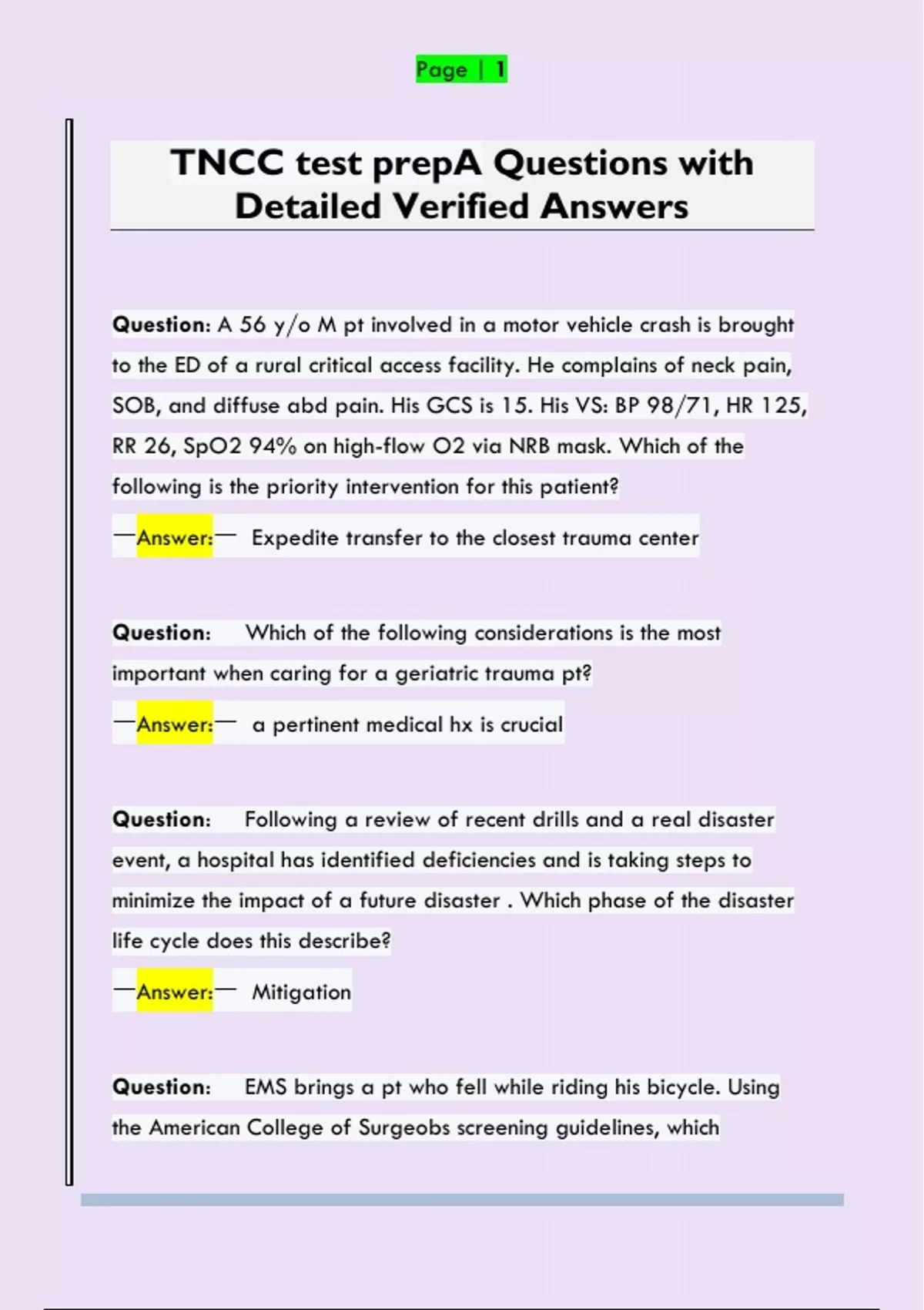 Question: EMS brings a pt from MVC. VS: BP 90/49, HR 48, RR