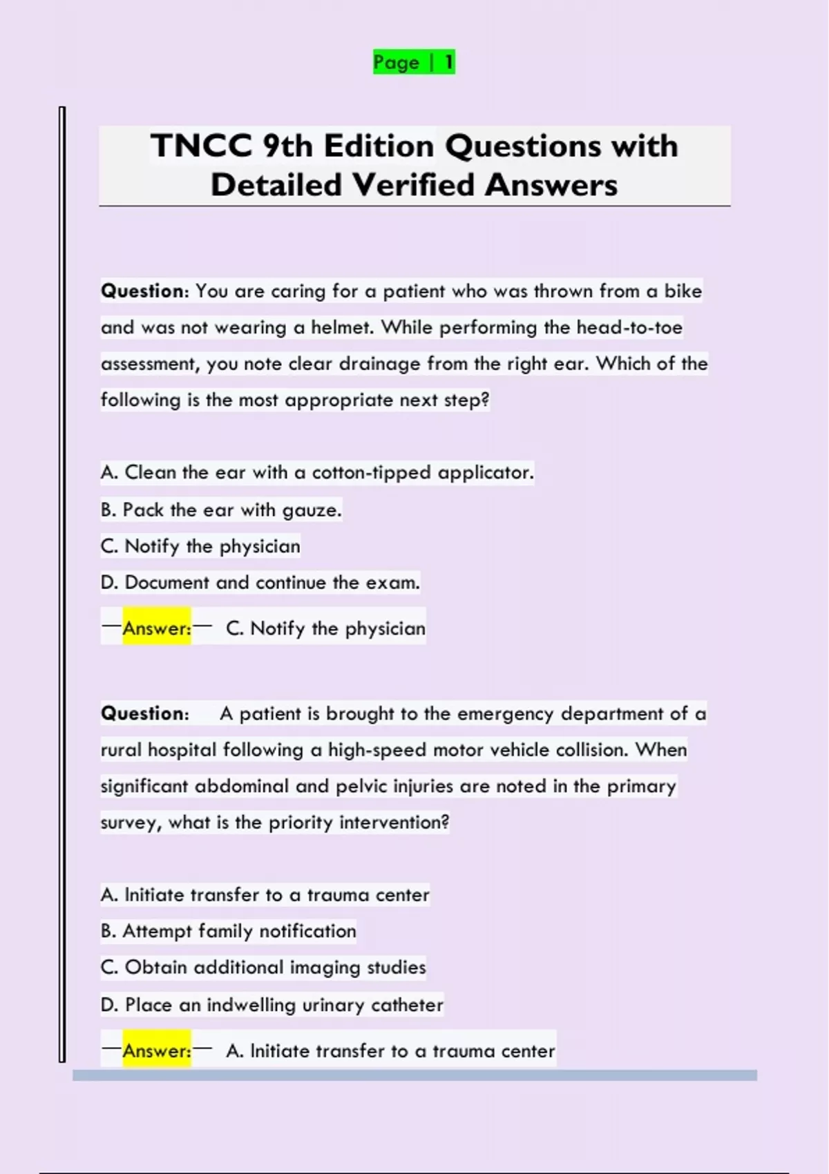 ⼀Answer:⼀ A. Initiate transfer to a trauma center