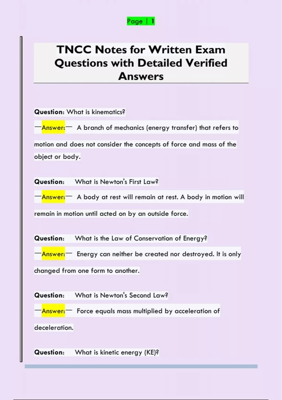 TNCC Notes for Written Exam