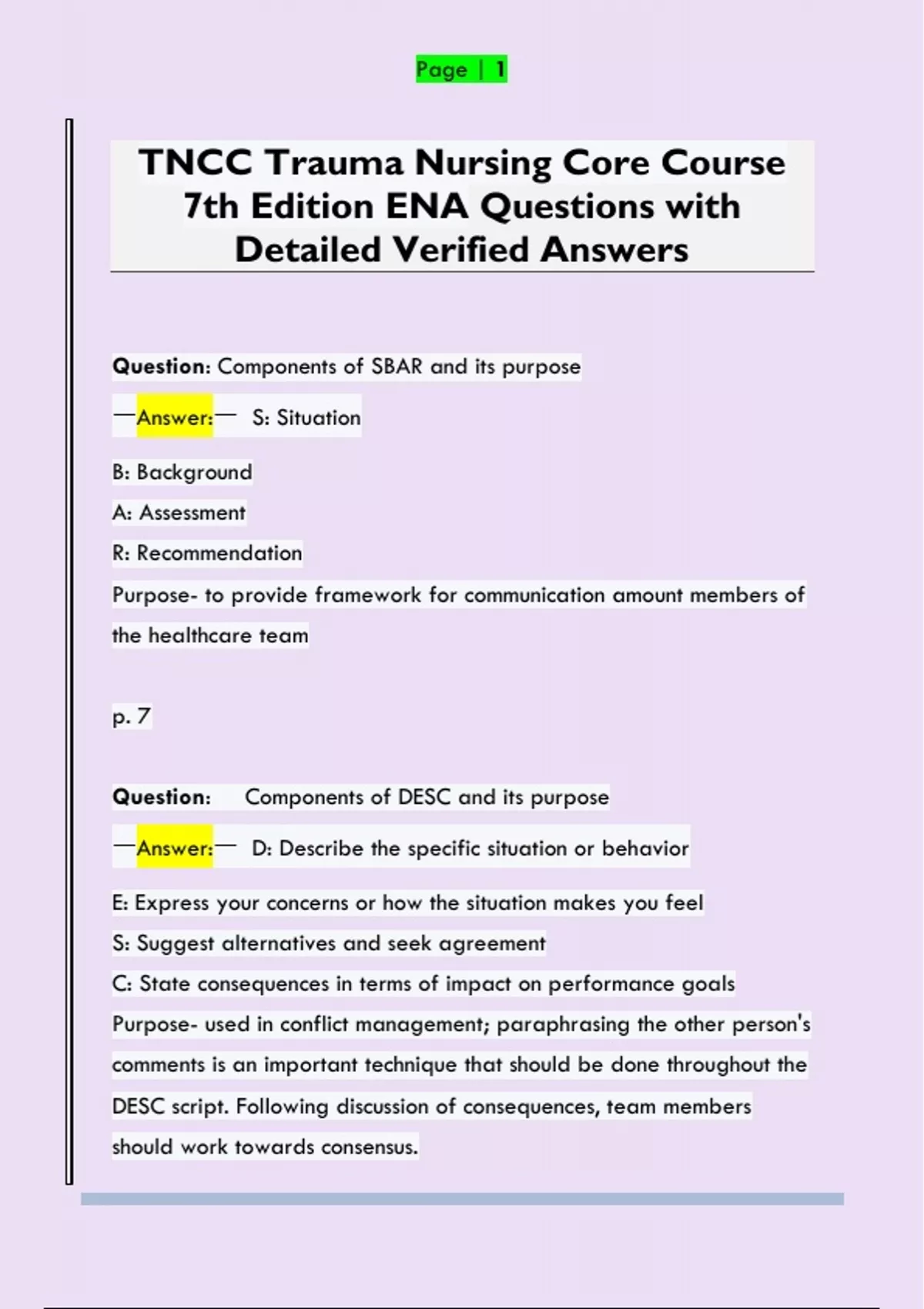 7th Edition ENA Questions with
