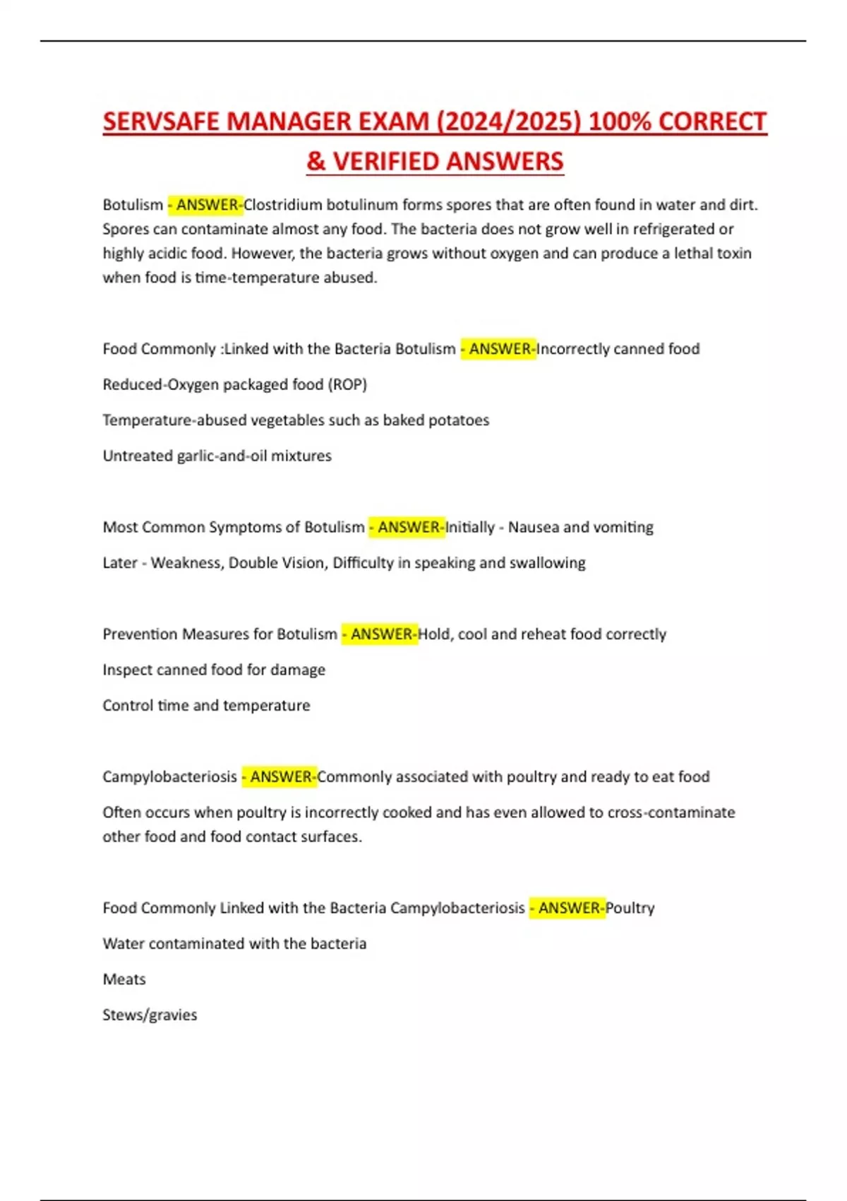 SERVSAFE MANAGER EXAM (2024/2025) 100% CORRECT