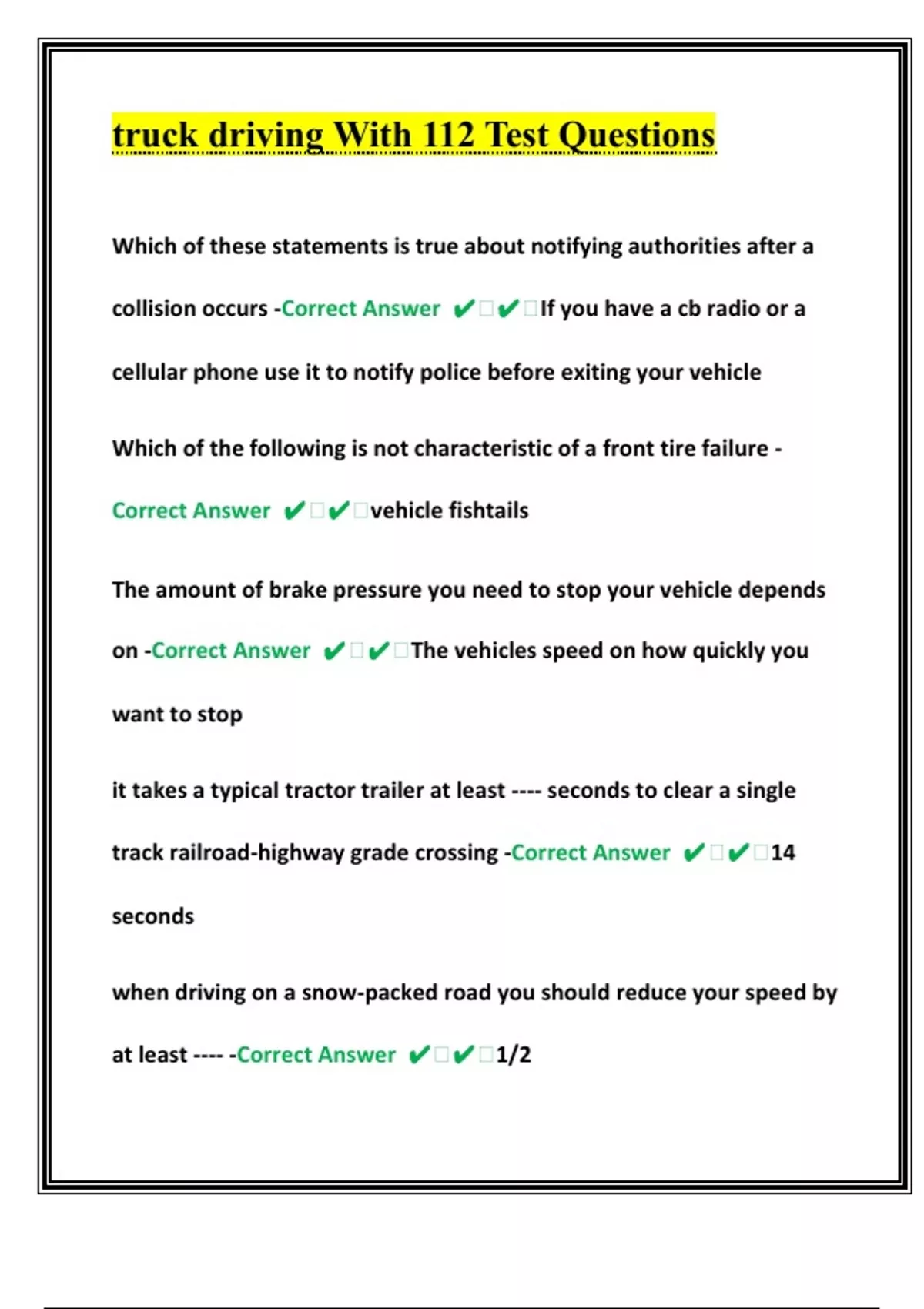 truck driving With 112 Test Questions With High Expert Correct Answers