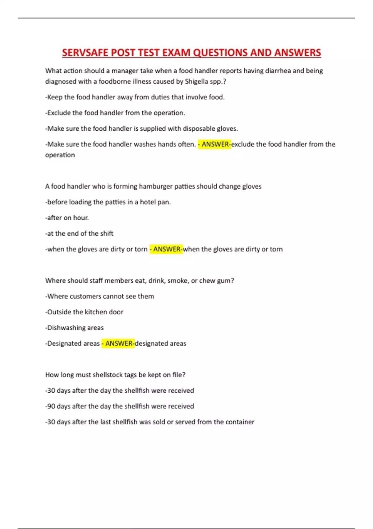 SERVSAFE POST TEST EXAM QUESTIONS AND ANSWERS.