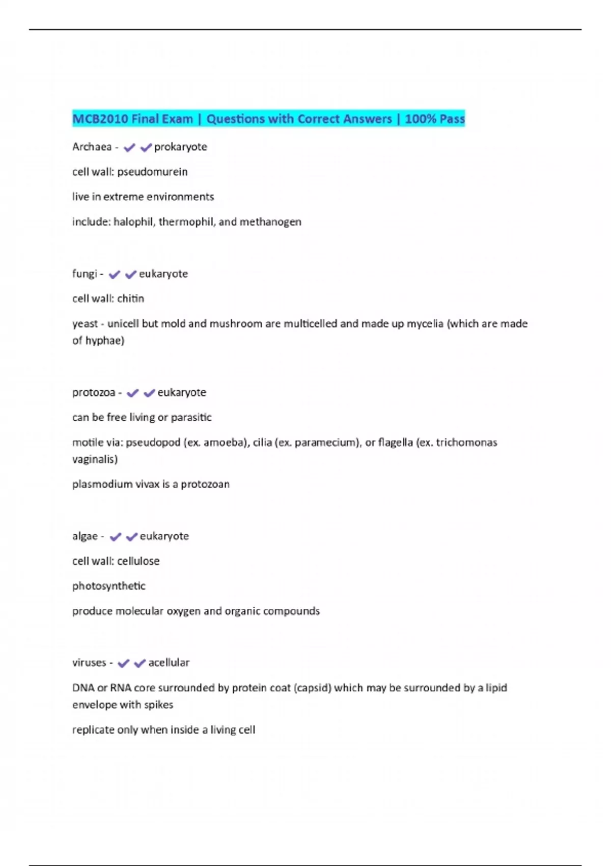 mcb2010 final exam questions with correct answer
