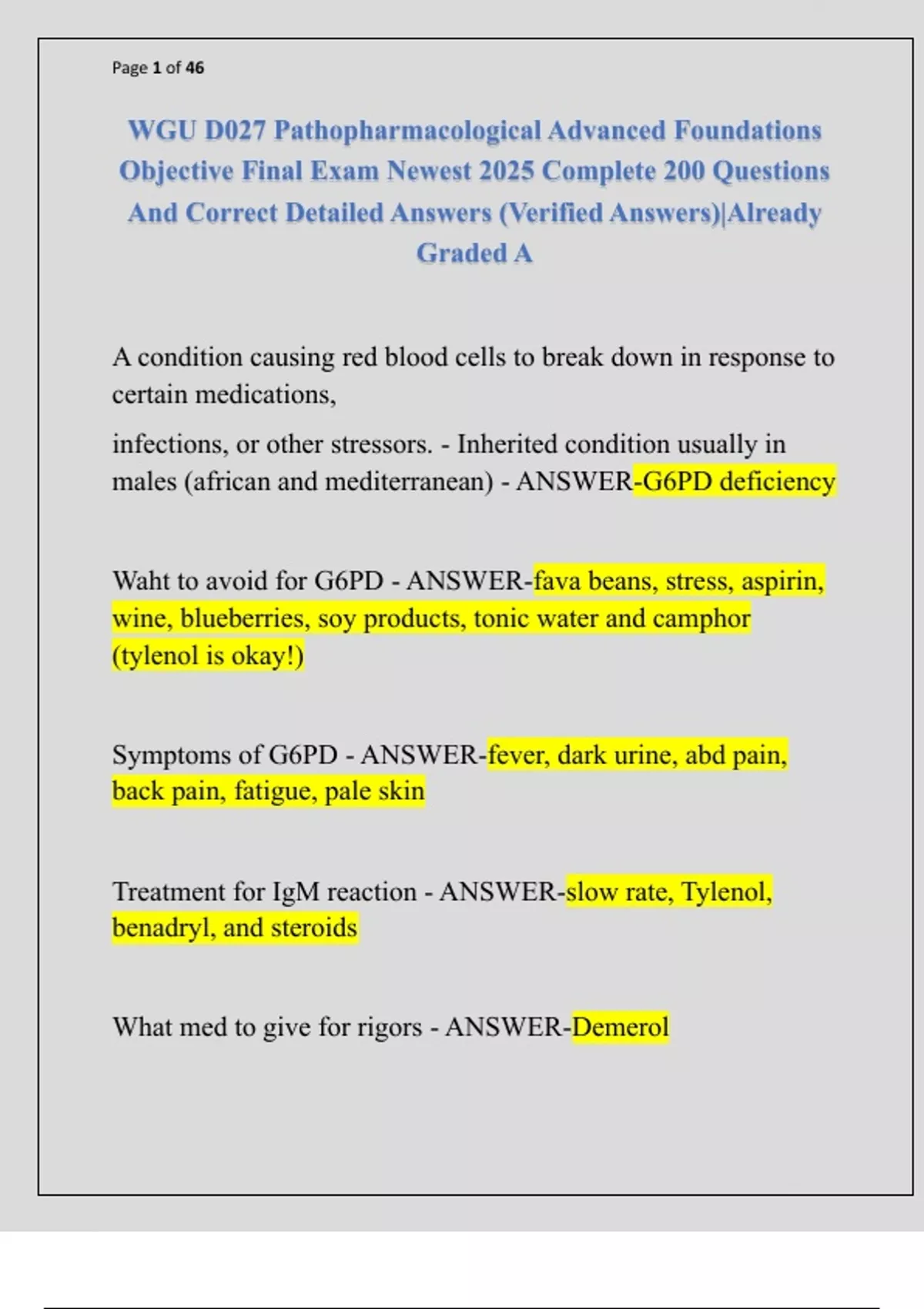 WGU D027 Pathopharmacological Advanced Foundations