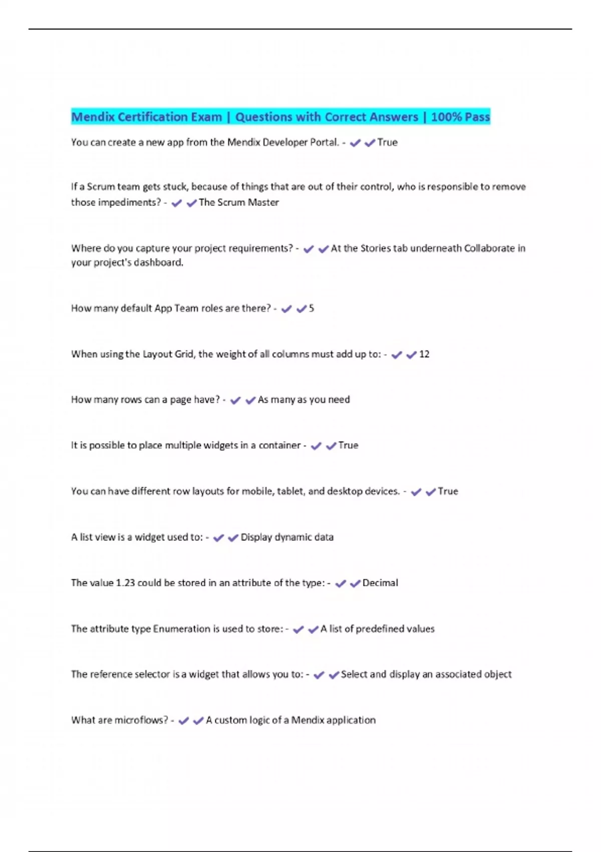 Mendix Certification Exam | Questions with Correct Answers | 100% Pass