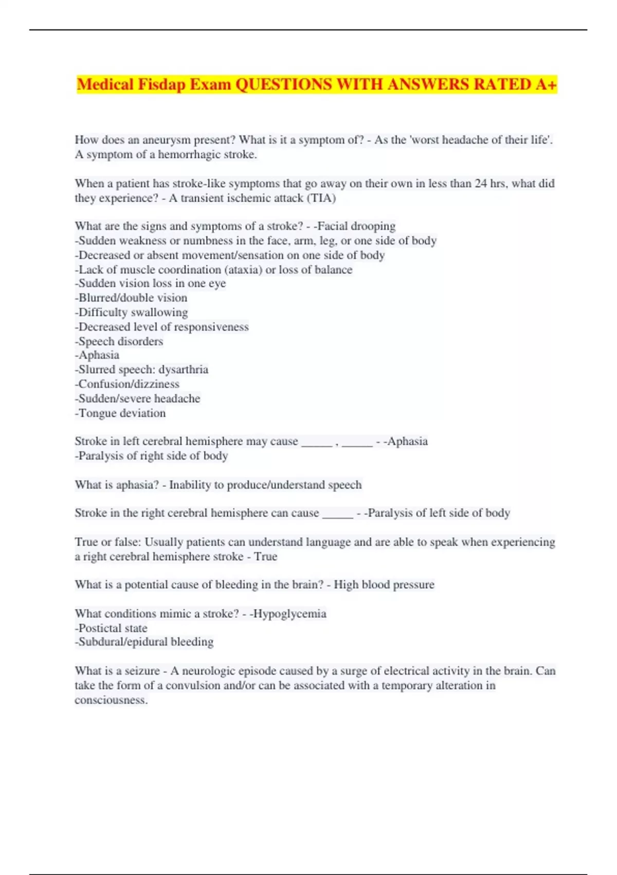 Medical Fisdap Exam QUESTIONS WITH ANSWERS RATED A+