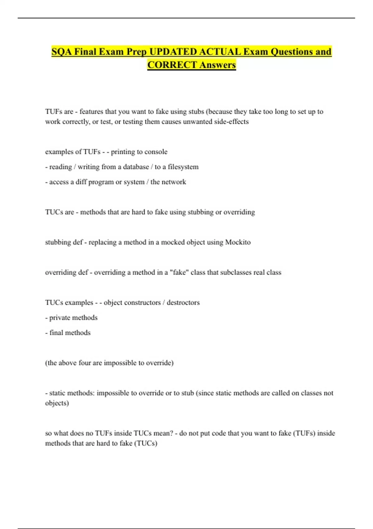 SQA Final Exam Prep UPDATED ACTUAL Exam Questions and