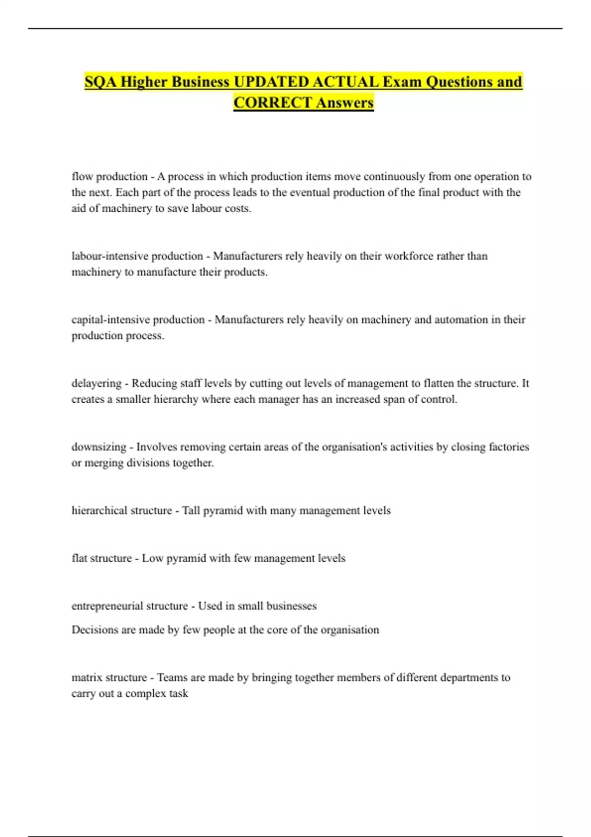 SQA Higher Business UPDATED ACTUAL Exam Questions and