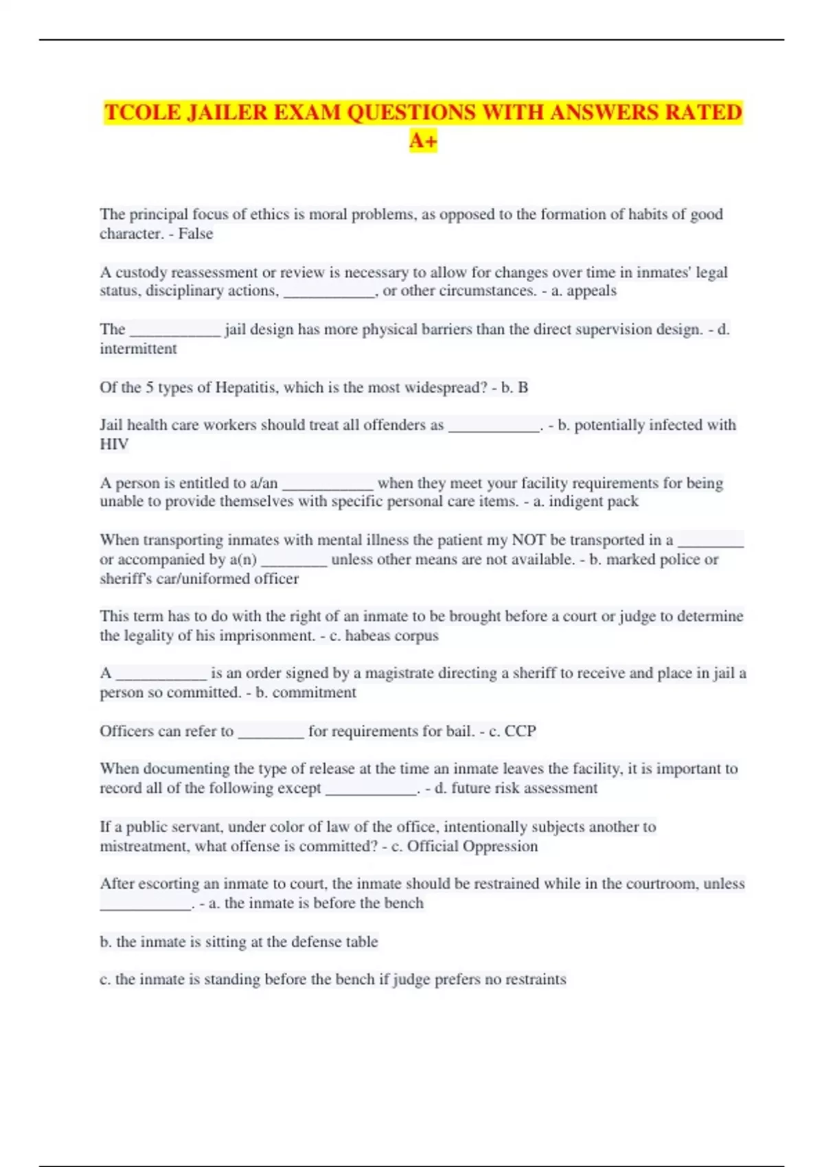 TCOLE JAILER EXAM QUESTIONS WITH ANSWERS RATED A+