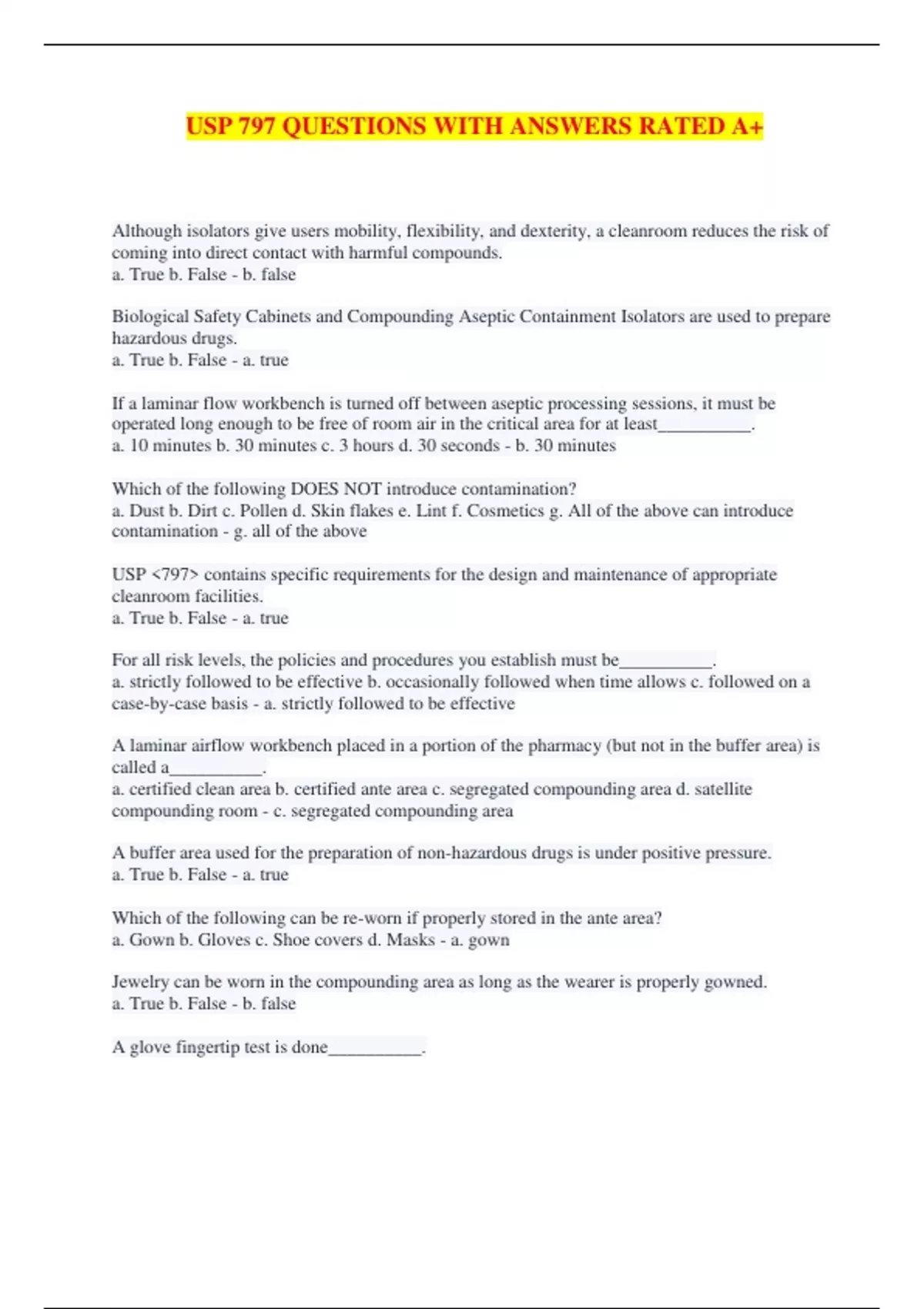 USP 797 QUESTIONS WITH ANSWERS RATED A+