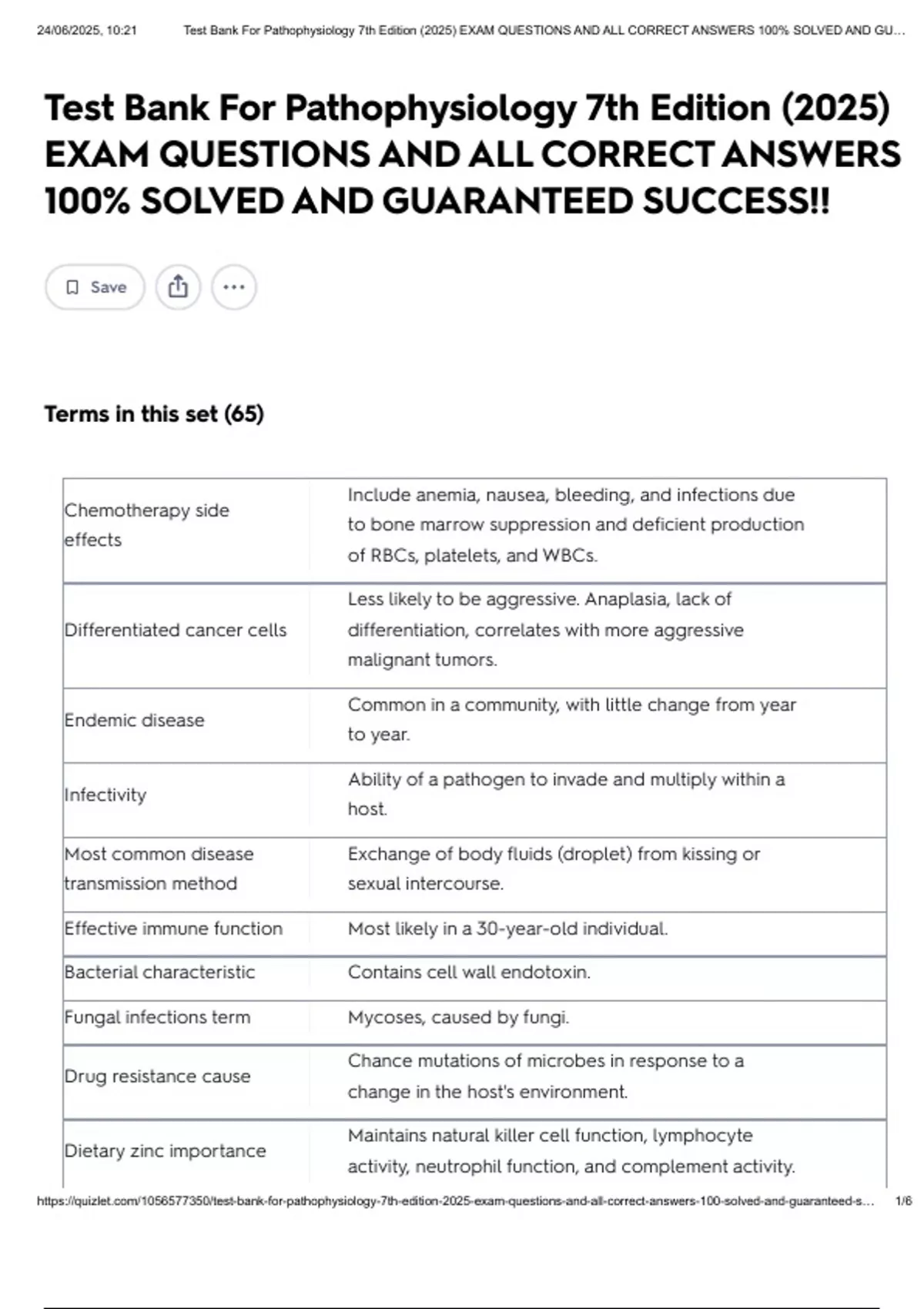 , 24/06/2025, 10:21 Test Bank For Pathophysiology 7th Edition (2025) EXAM QUESTIONS AND ALL CORRECT ANSWERS 100% SOLVED AND GU…