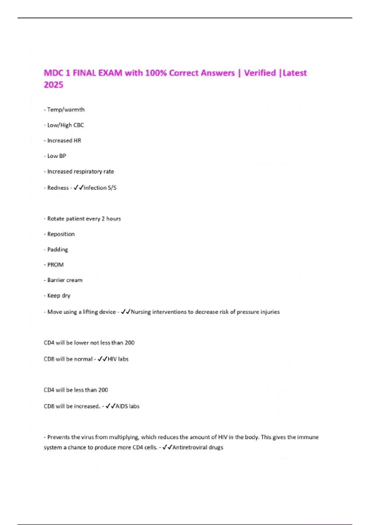 MDC 1 FINAL EXAM with 100% Correct Answers | Verified |Latest 2025
