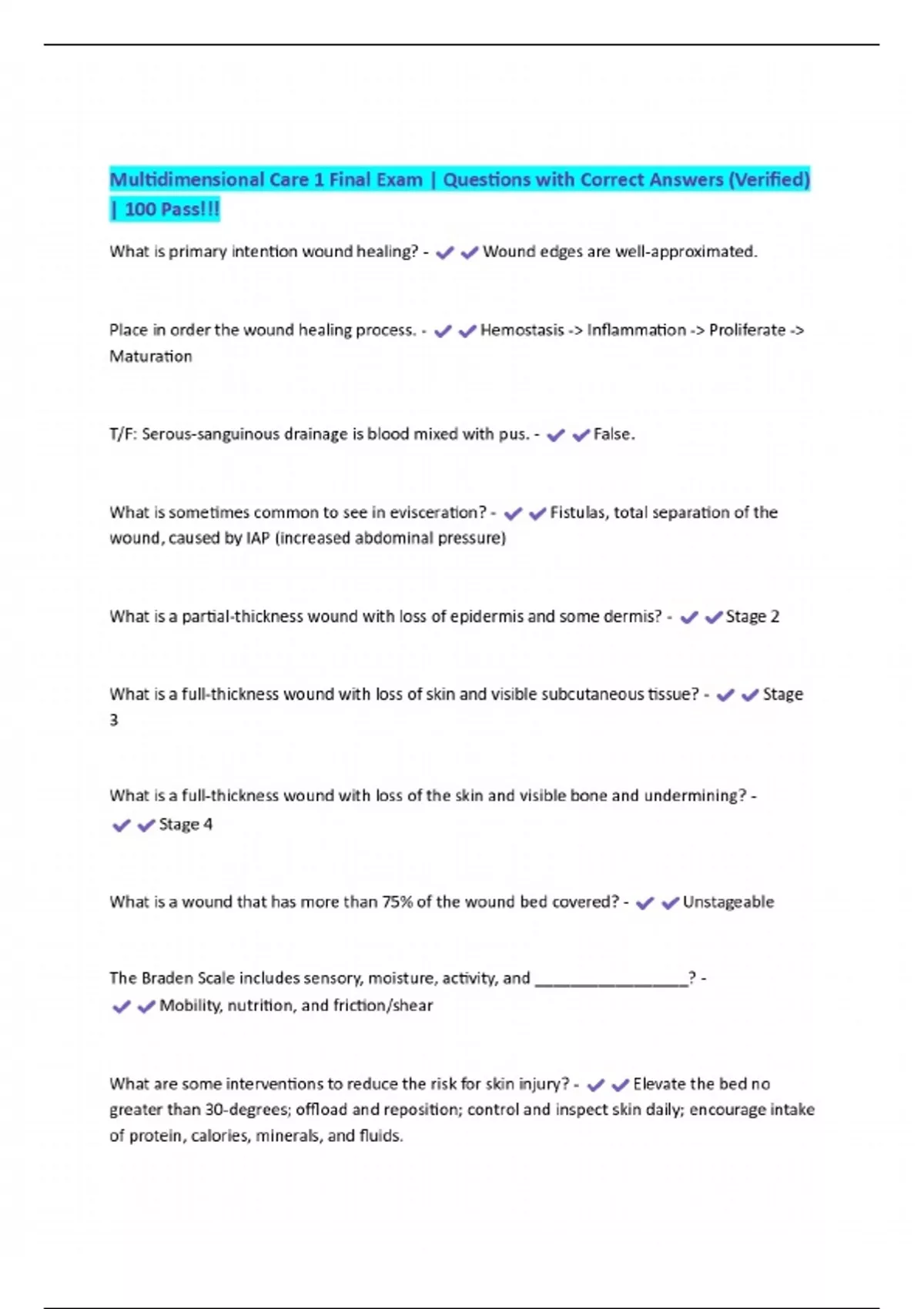 Multidimensional Care 1 Final Exam | Questions with Correct Answers (Verified) | 100 Pass!!!