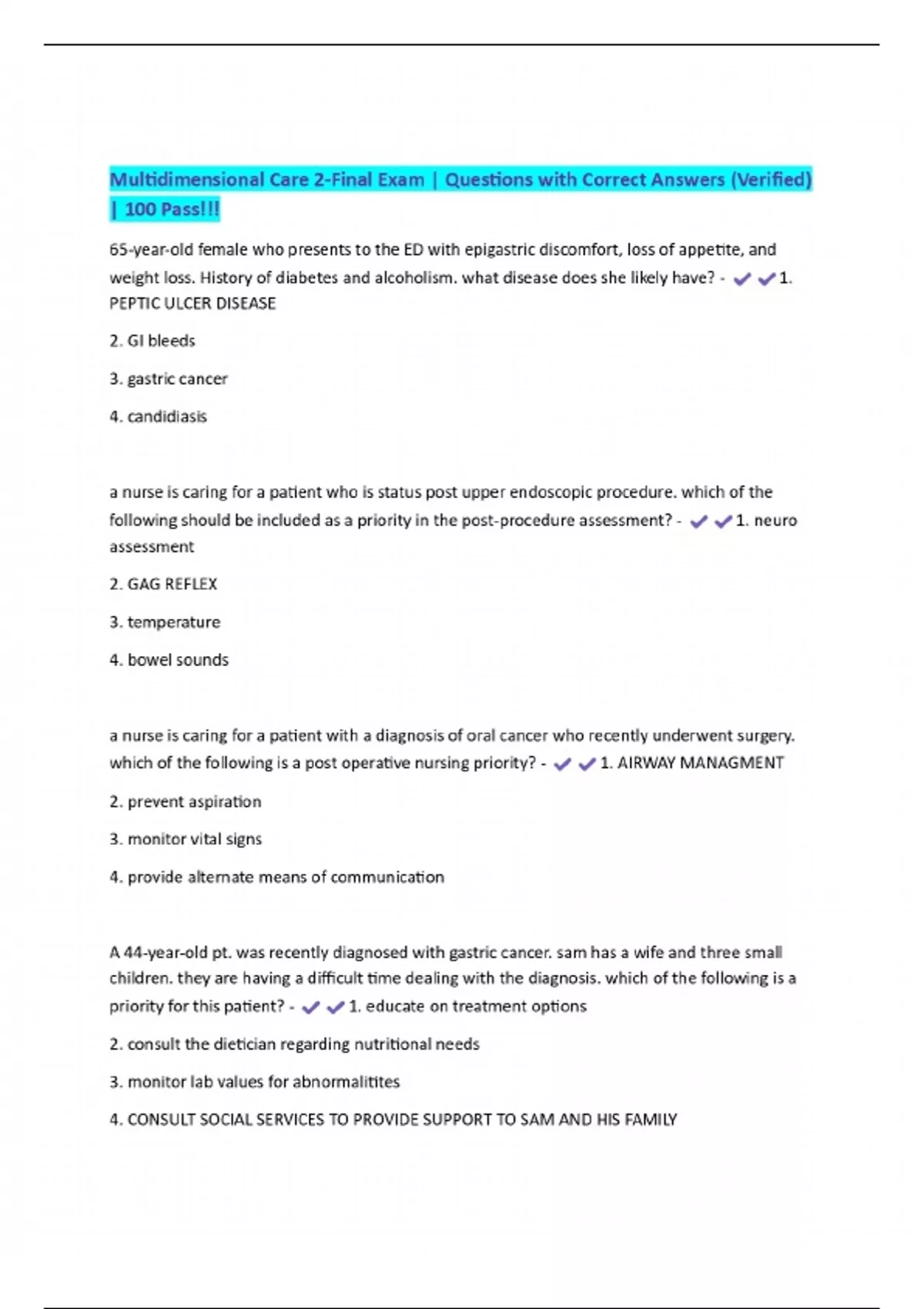 Multidimensional Care 2-Final Exam | Questions with Correct Answers (Verified) | 100 Pass!!!