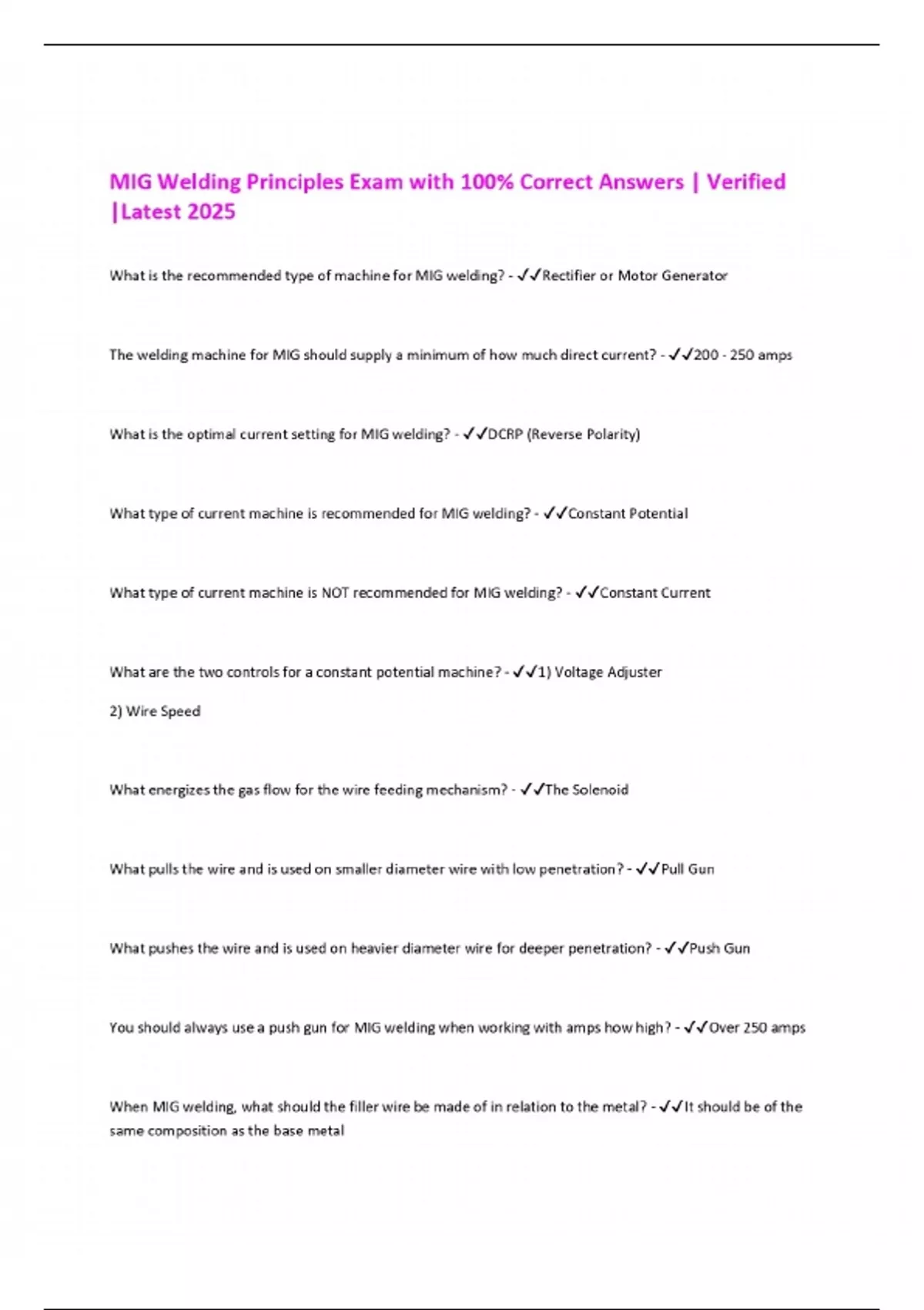 MIG Welding Principles Exam with 100% Correct Answers | Verified |Latest 2025