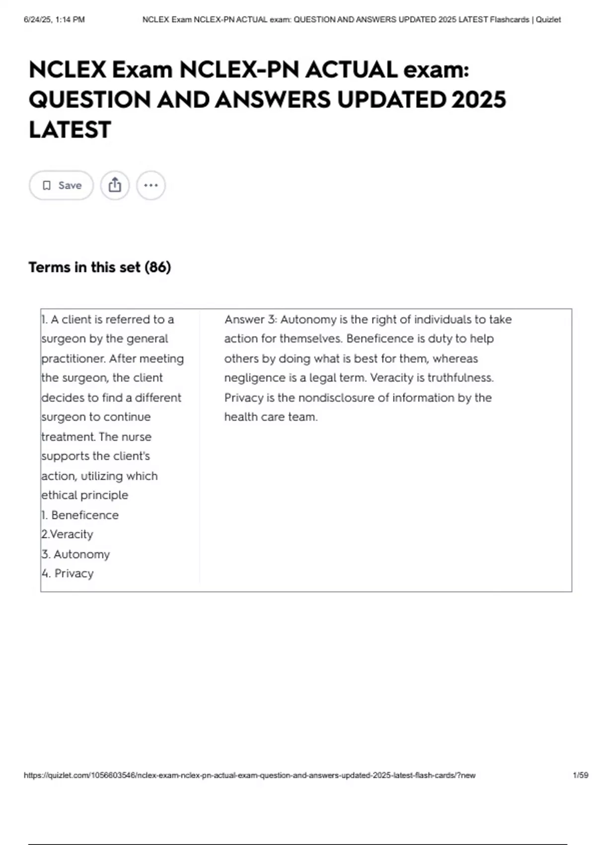 , 6/24/25, 1:14 PM NCLEX Exam NCLEX-PN ACTUAL exam: QUESTION AND ANSWERS UPDATED 2025 LATEST Flashcards | Quizlet