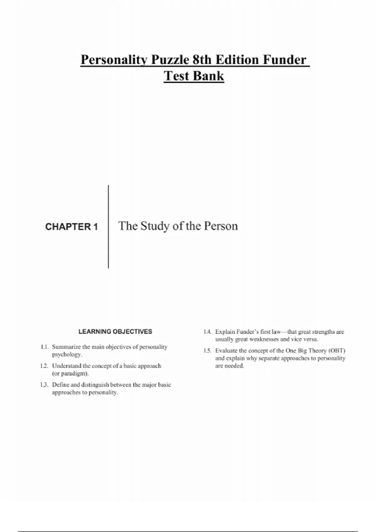 Test Bank - The Personality Puzzle 8th Edition by David C. Funder | Chapter 1-18