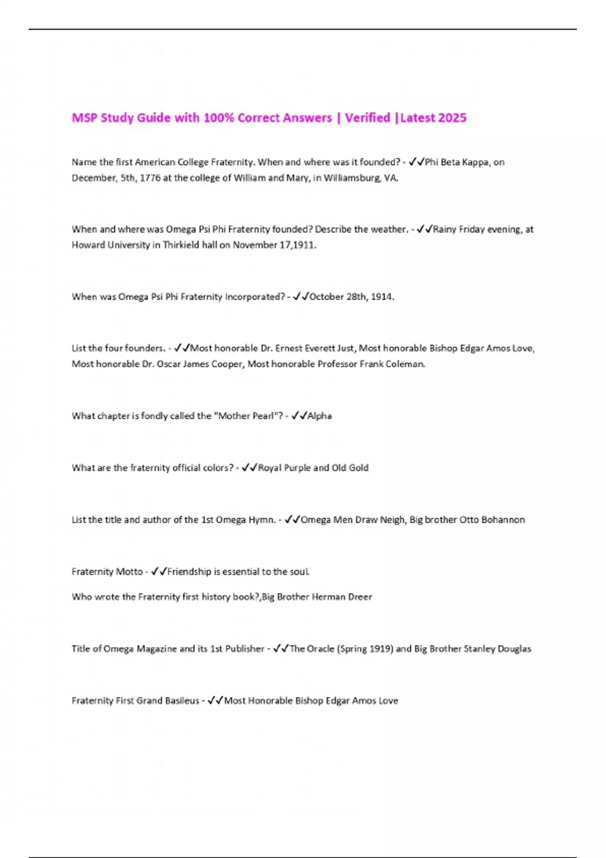 MSP Study Guide with 100% Correct Answers | Verified |Latest 2025
