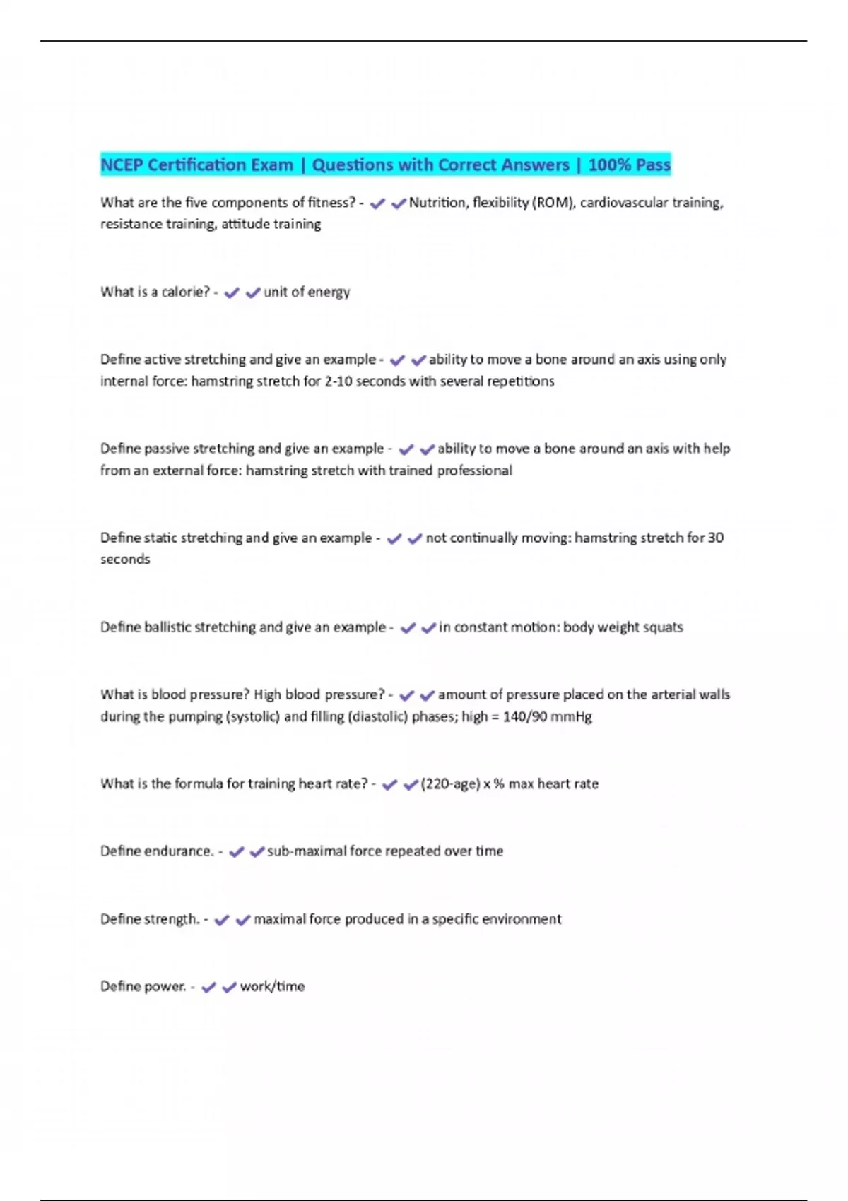 NCEP Certification Exam | Questions with Correct Answers | 100% Pass