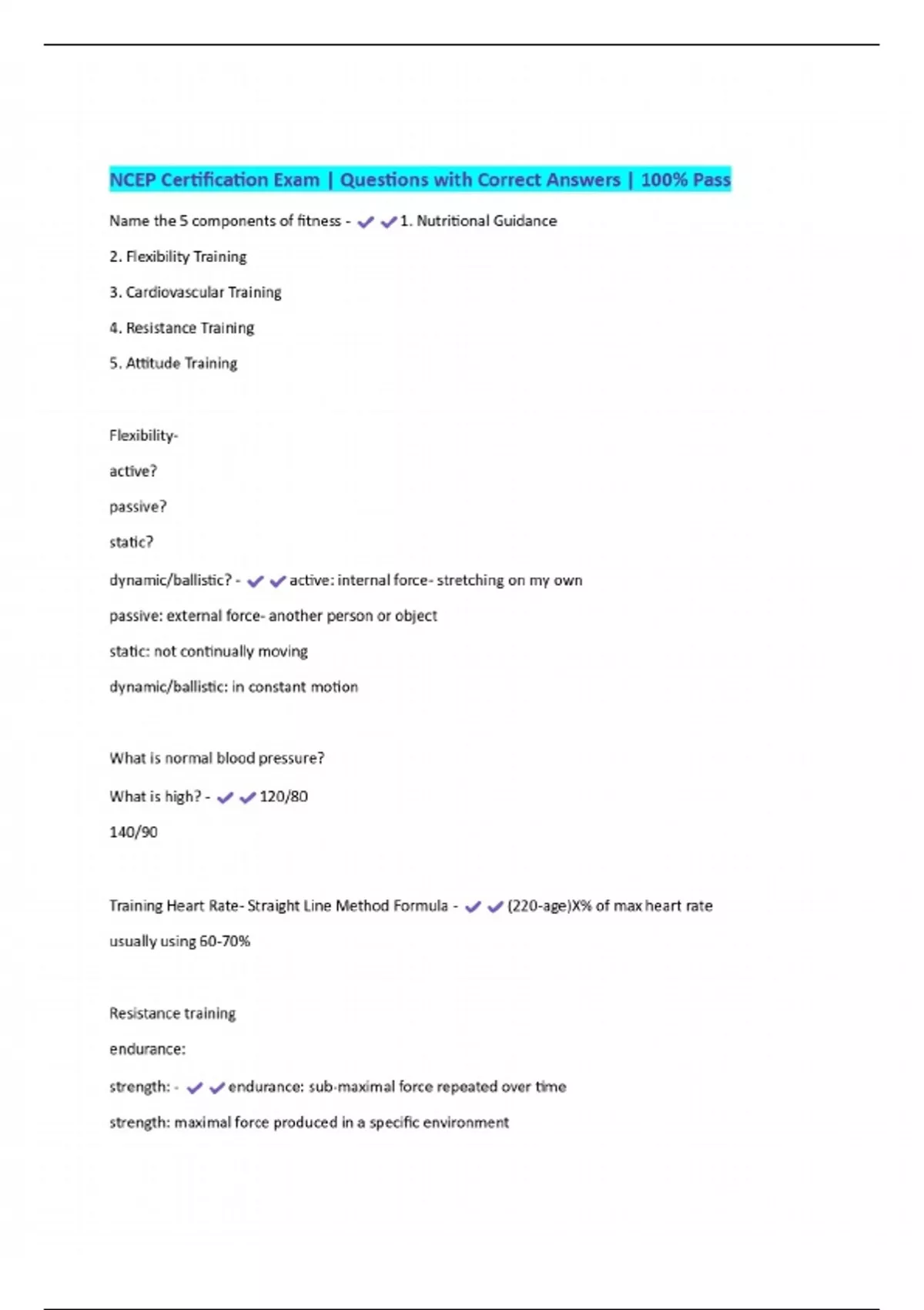 ncep certification exam questions with correct a