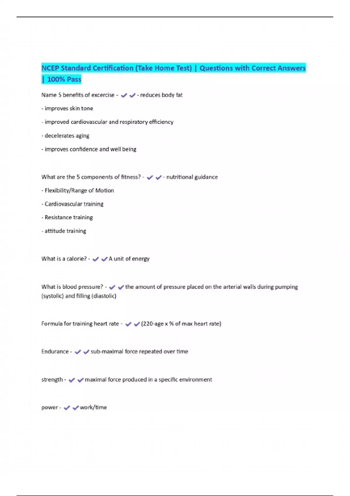 NCEP Standard Certification (Take Home Test) | Questions with Correct Answers | 100% Pass