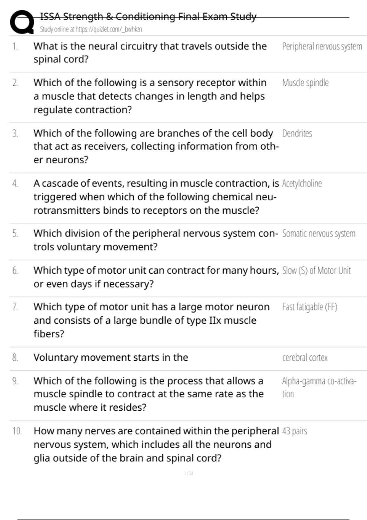 1. What is the neural circuitry that travels outside the Peripheral nervous system