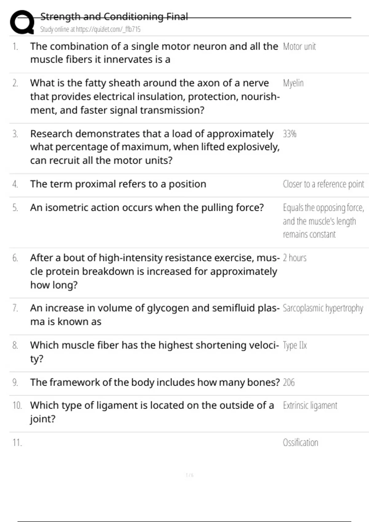 5. An isometric action occurs when the pulling force? Equals the opposing force,