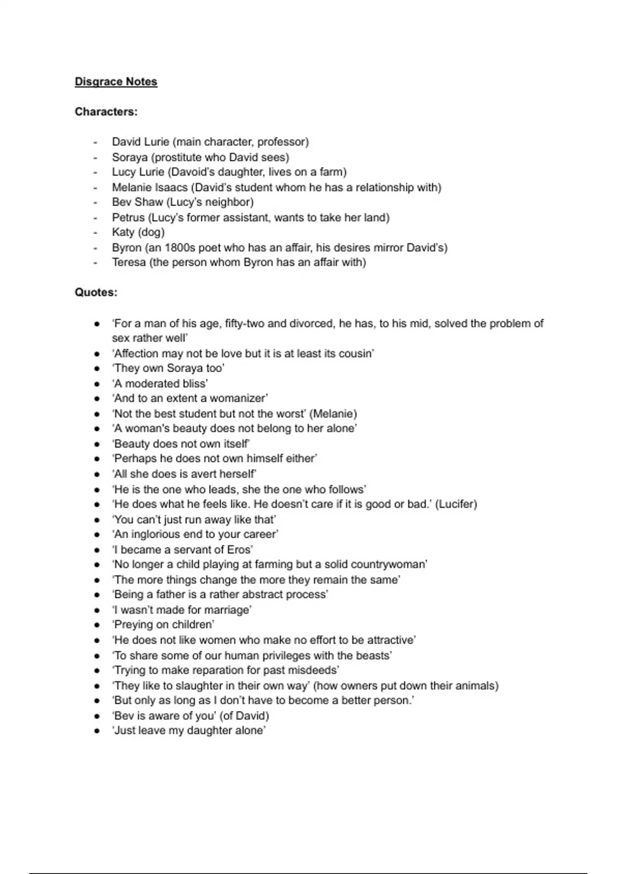 Disgrace Notes