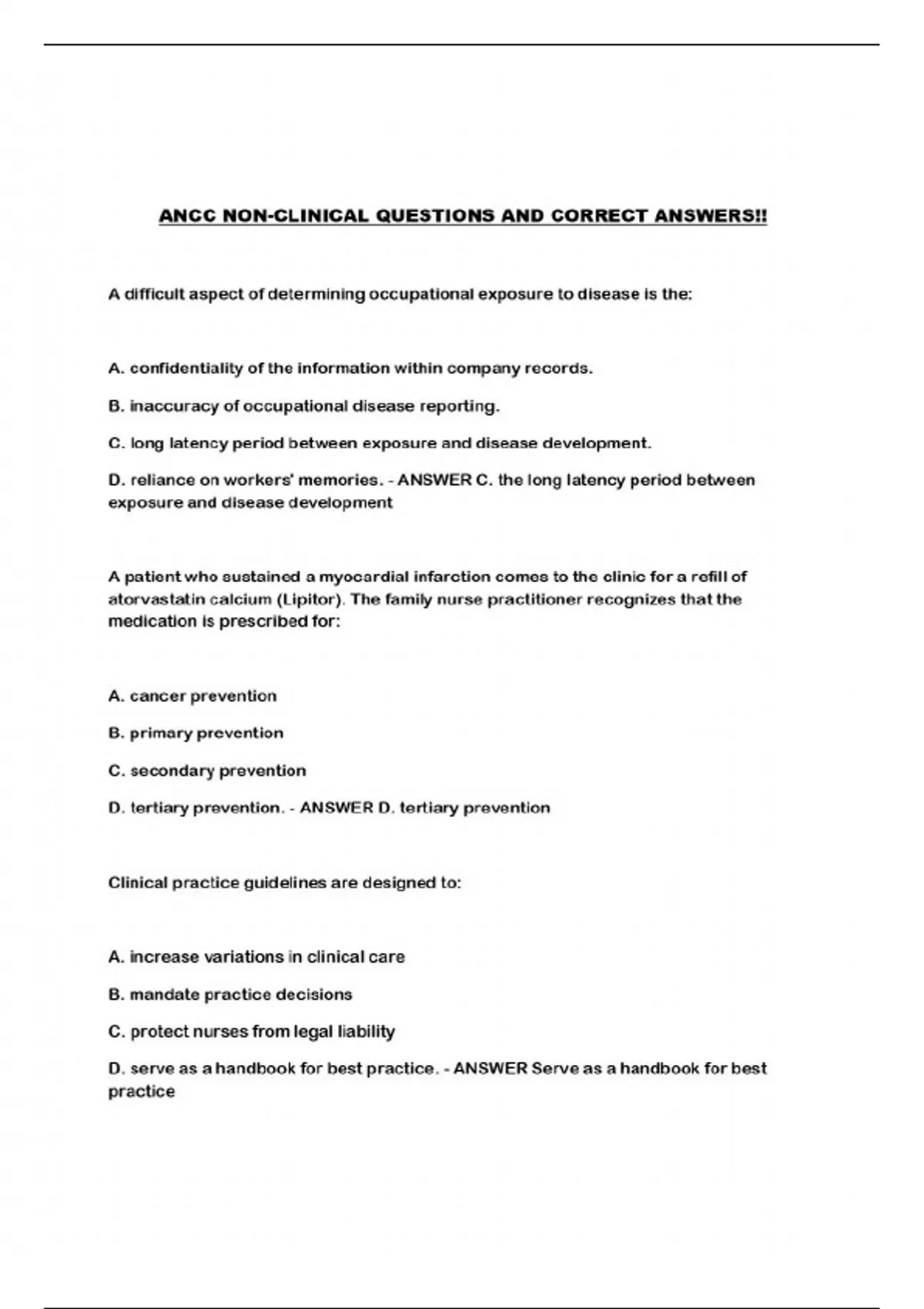 ANCC NON-CLINICAL QUESTIONS AND CORRECT ANSWERS!!...