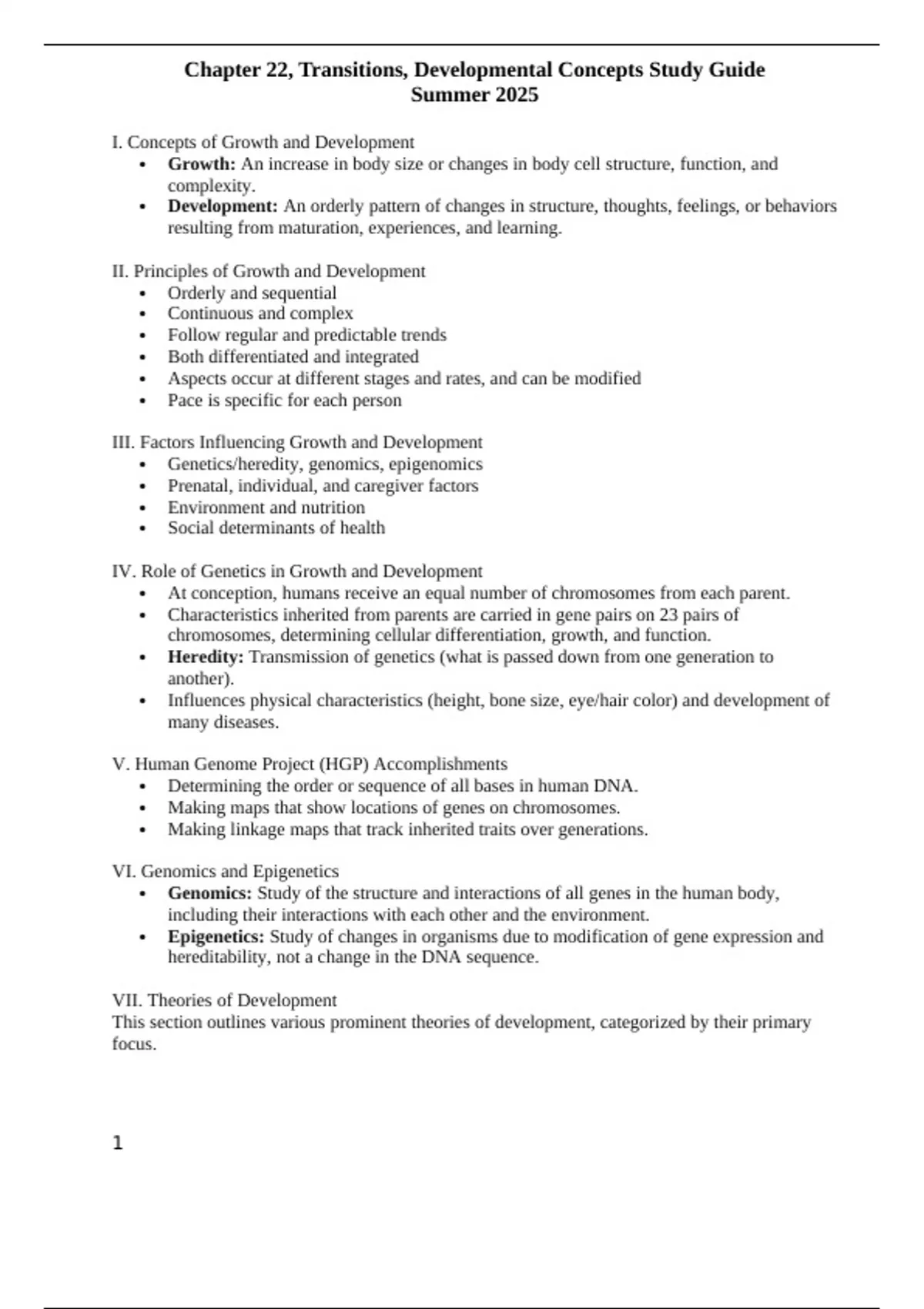 , Chapter 22, Transitions, Developmental Concepts Study Guide