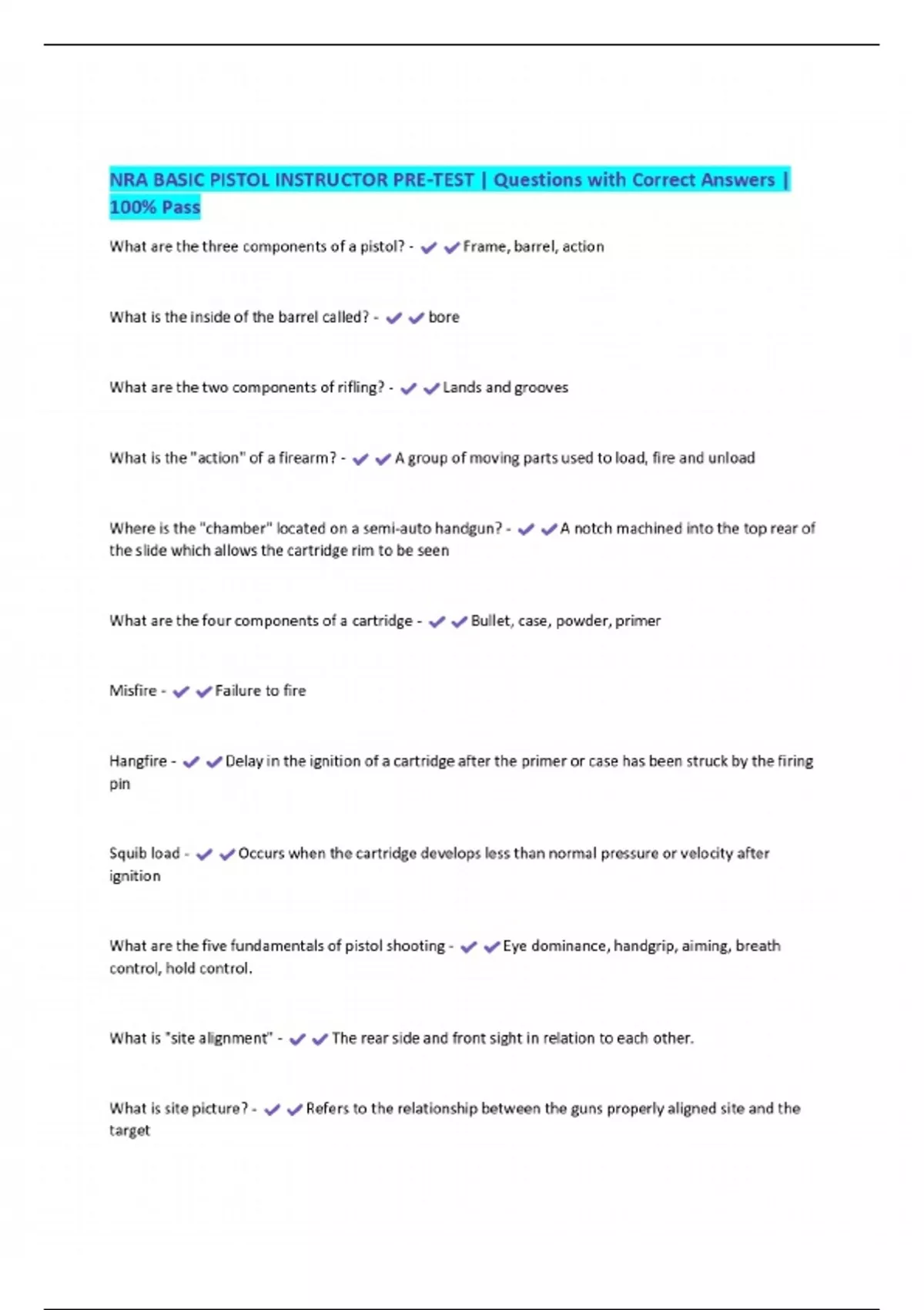 NRA BASIC PISTOL INSTRUCTOR PRE-TEST | Questions with Correct Answers | 100% Pass