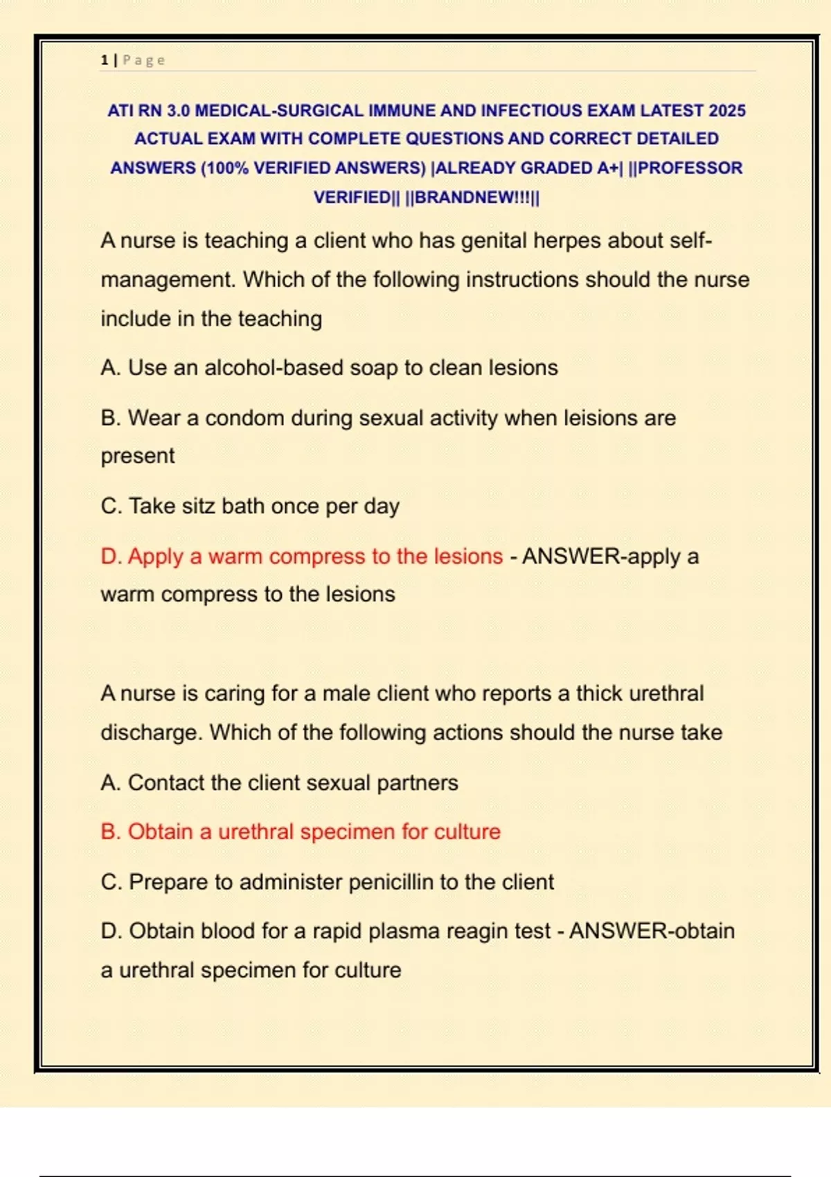 ATI RN 3.0 MEDICAL-SURGICAL IMMUNE AND INFECTIOUS EXAM LATEST 2025