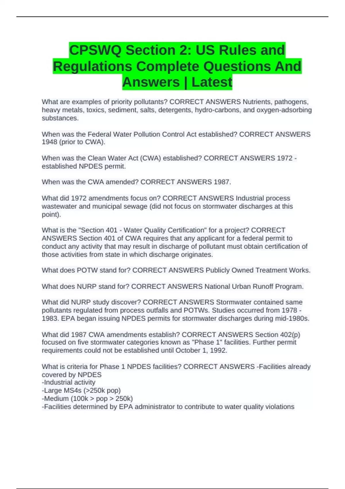 What did 1987 CWA amendments establish? CORRECT ANSWERS Section 402(p)