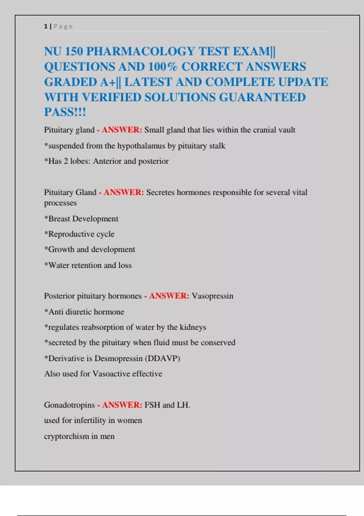 NU 150 PHARMACOLOGY TEST EXAM||