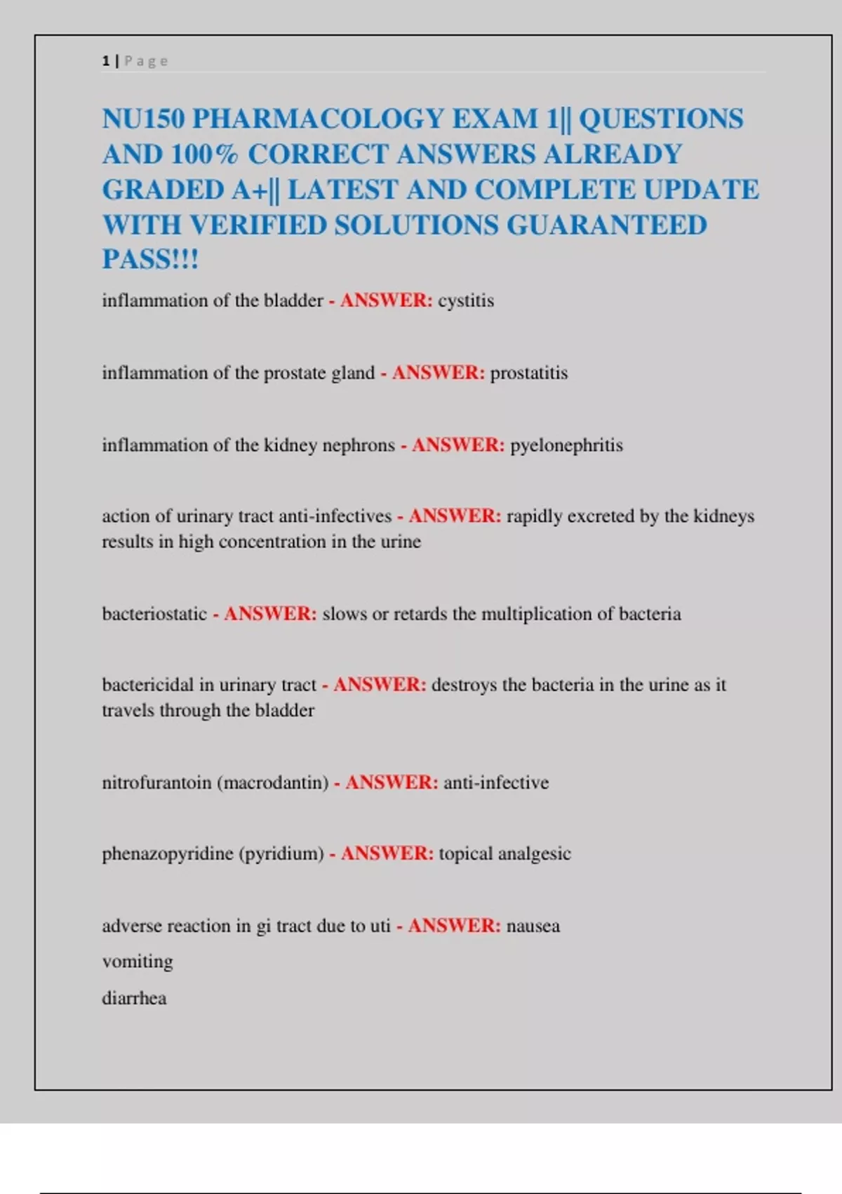 NU150 PHARMACOLOGY EXAM 1|| QUESTIONS
