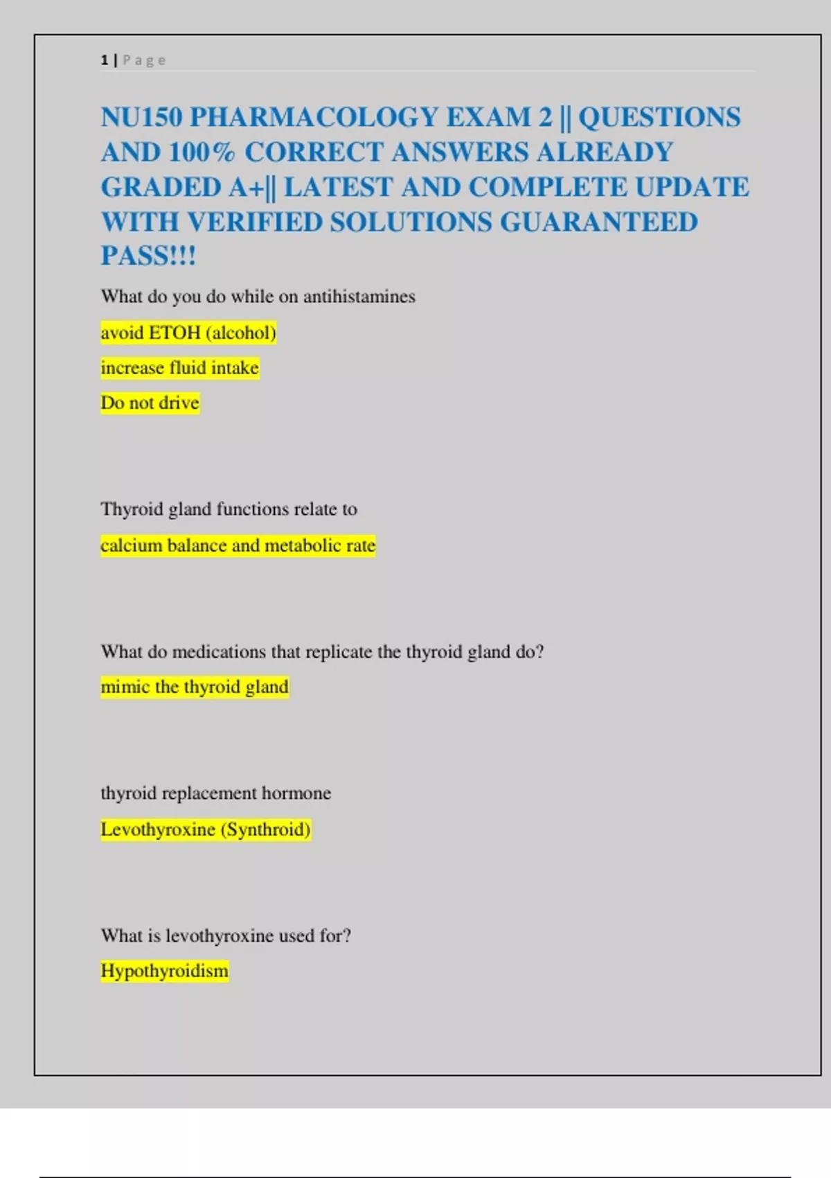 NU150 PHARMACOLOGY EXAM 2 || QUESTIONS